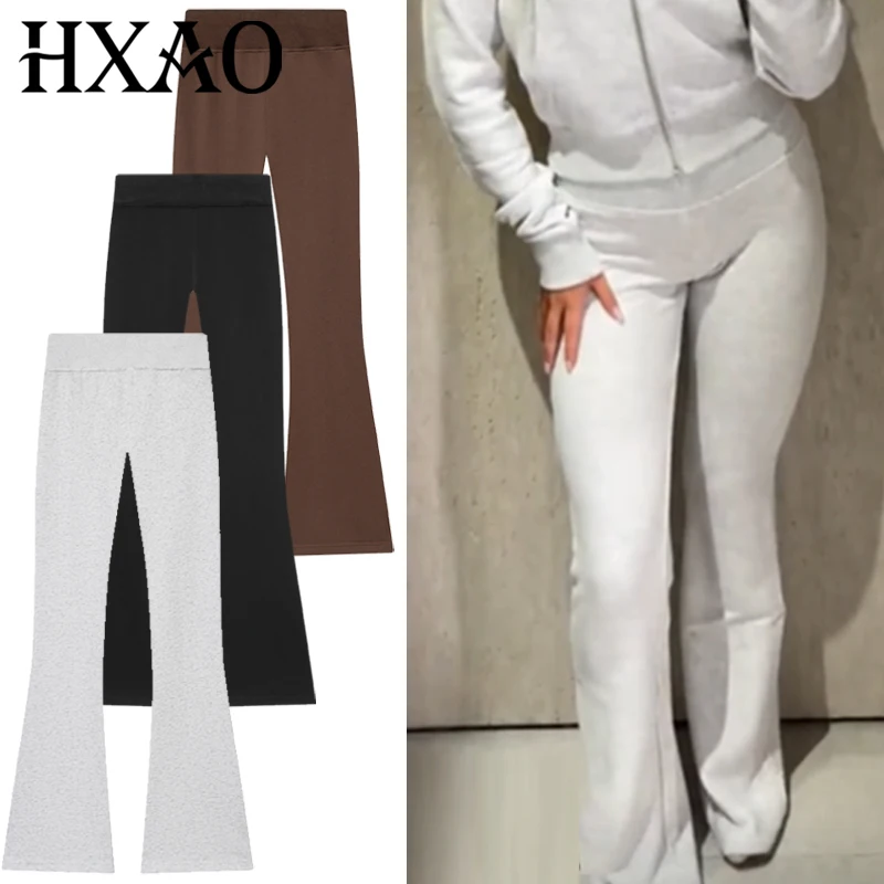HXAO Fleece Flared Trousers Women's Pants Black Brown Grey Pants For Woman Chic High-Waisted Flared ...