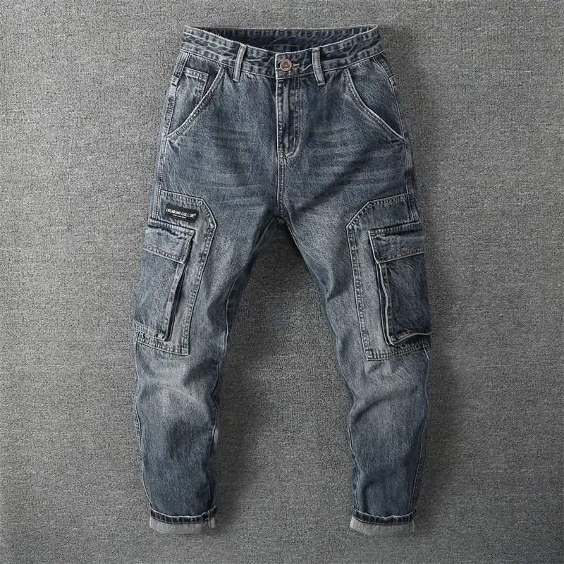 Autumn Retro Tooling Harlan Men's Trendy Jeans Trendy Brand Loose Straight Pocket Large Size Men Clo...
