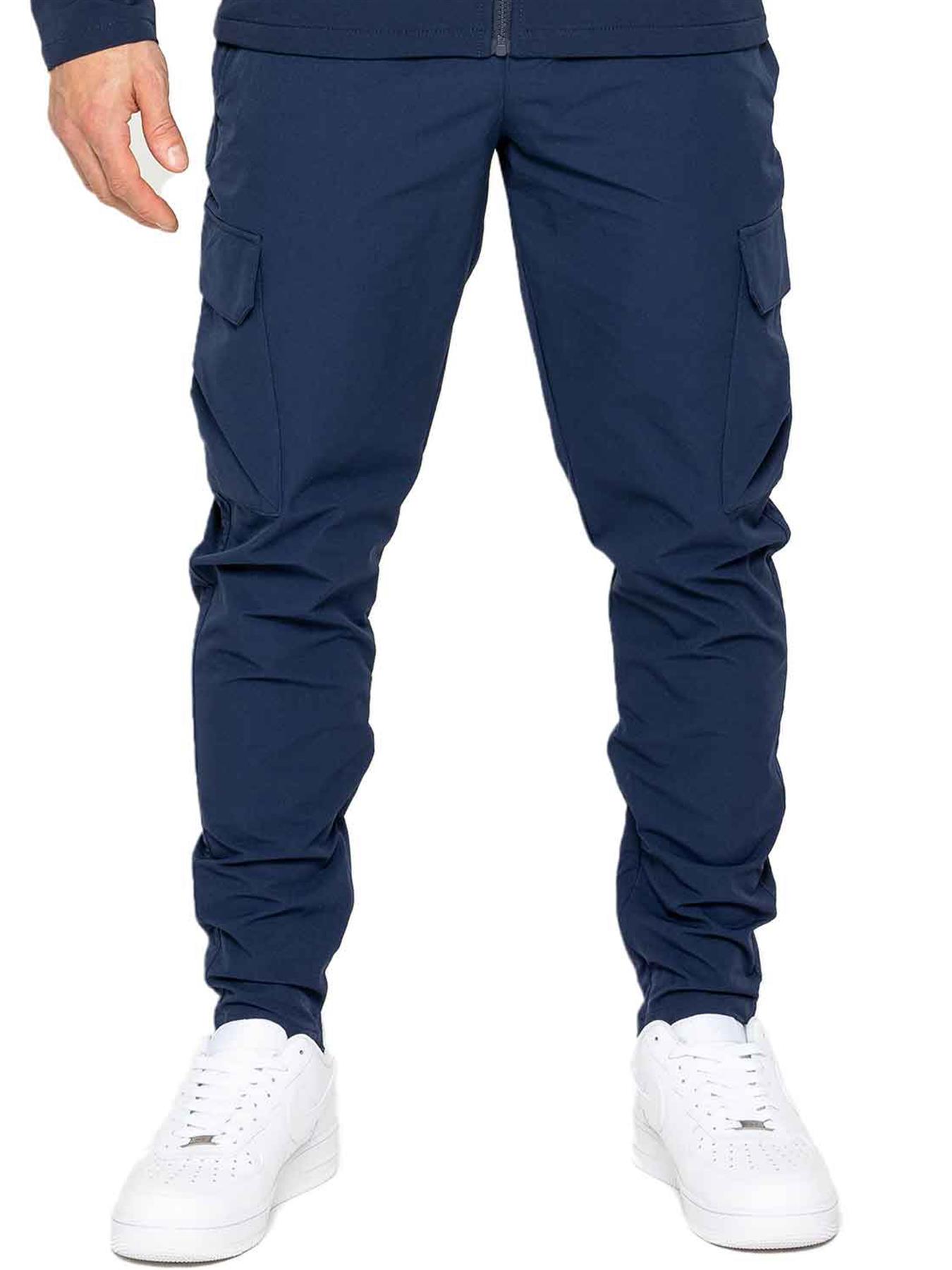 Enzo | Mens Cargo Slim Fit Trousers - Navy Nylon - Size Medium | En...