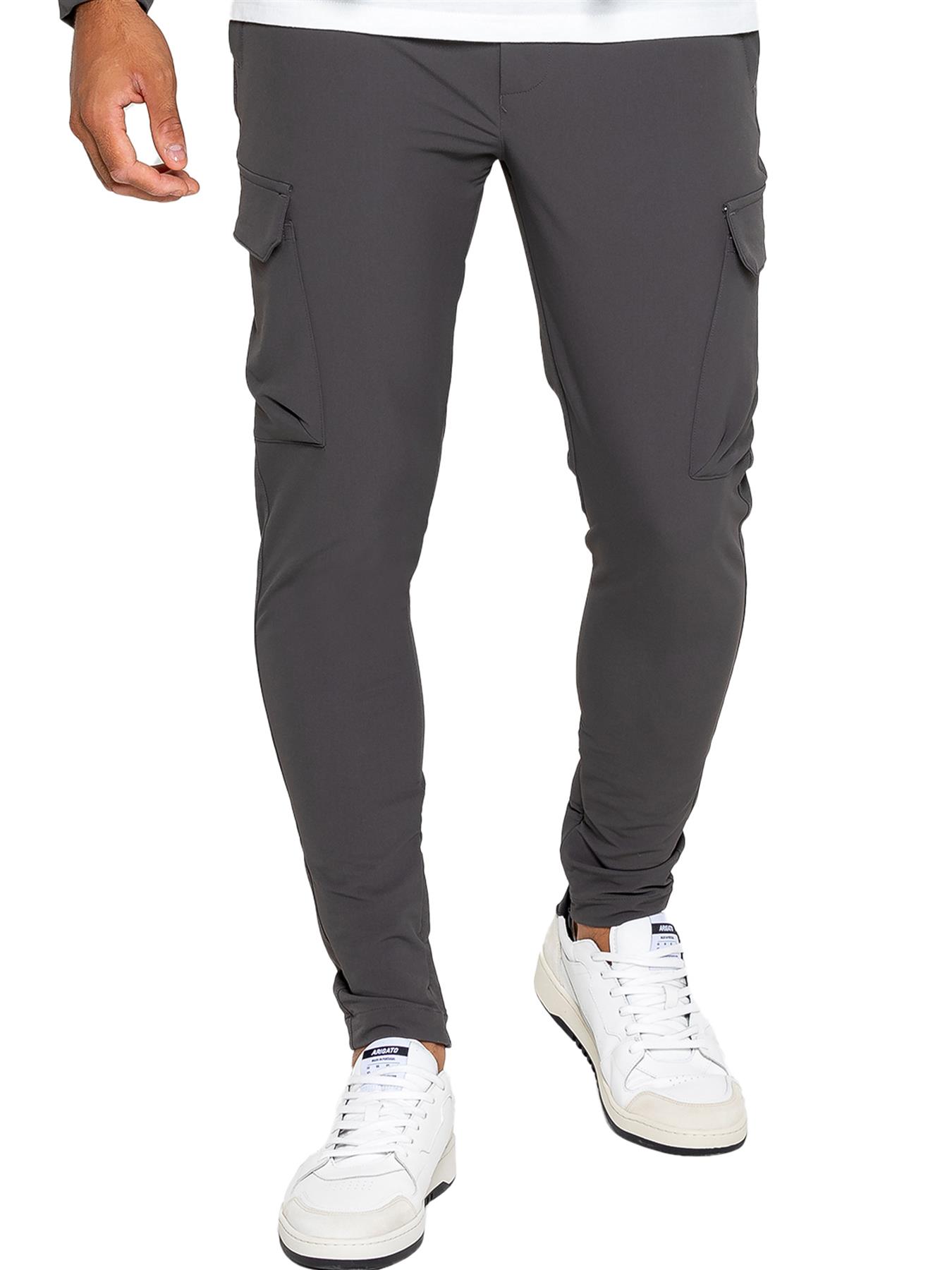Enzo | Mens Cargo Slim Fit Trousers - Charcoal Nylon - Size Large |...