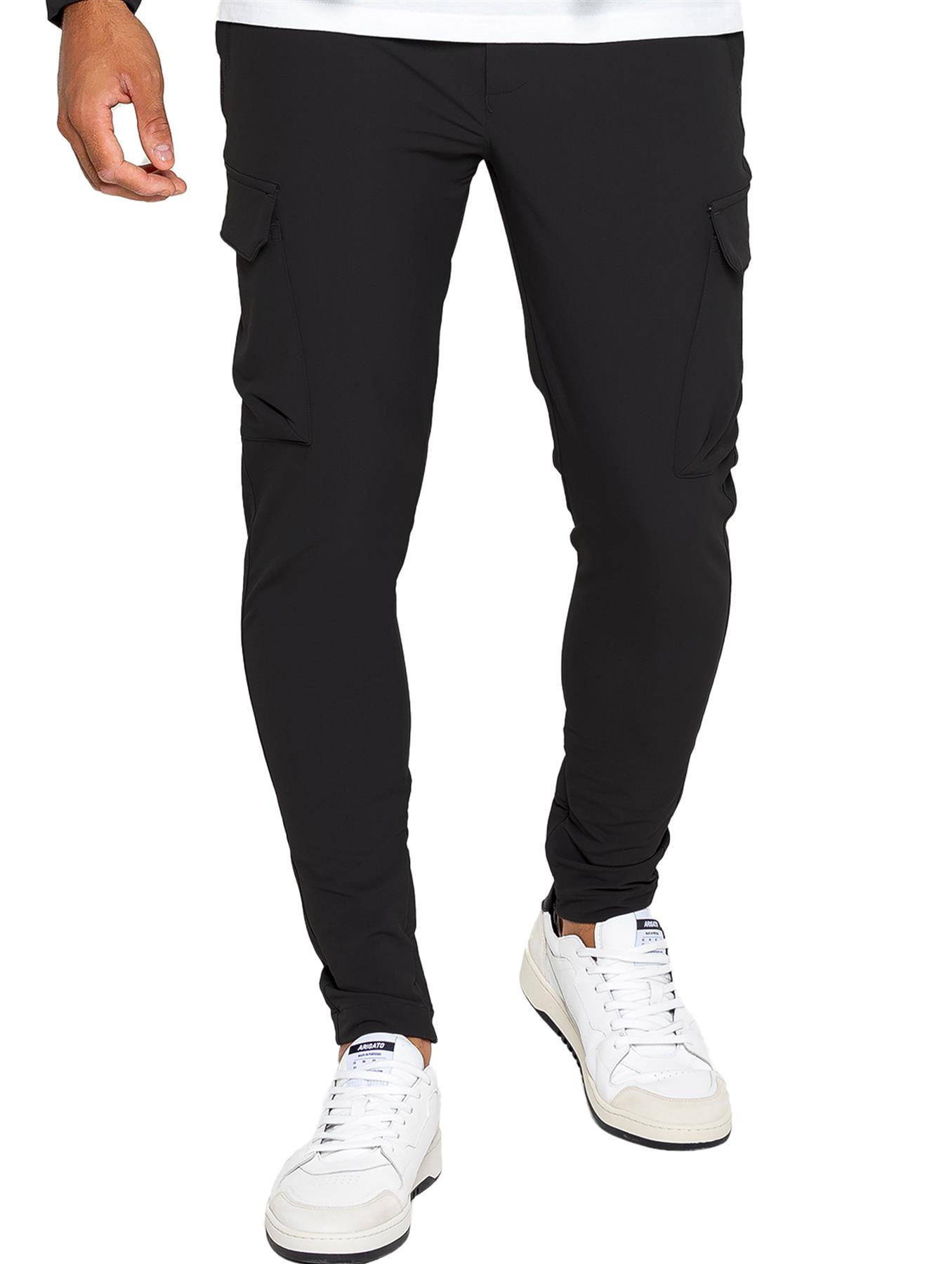 Enzo | Mens Cargo Slim Fit Trousers - Black Nylon - Size 2XL | Enzo...