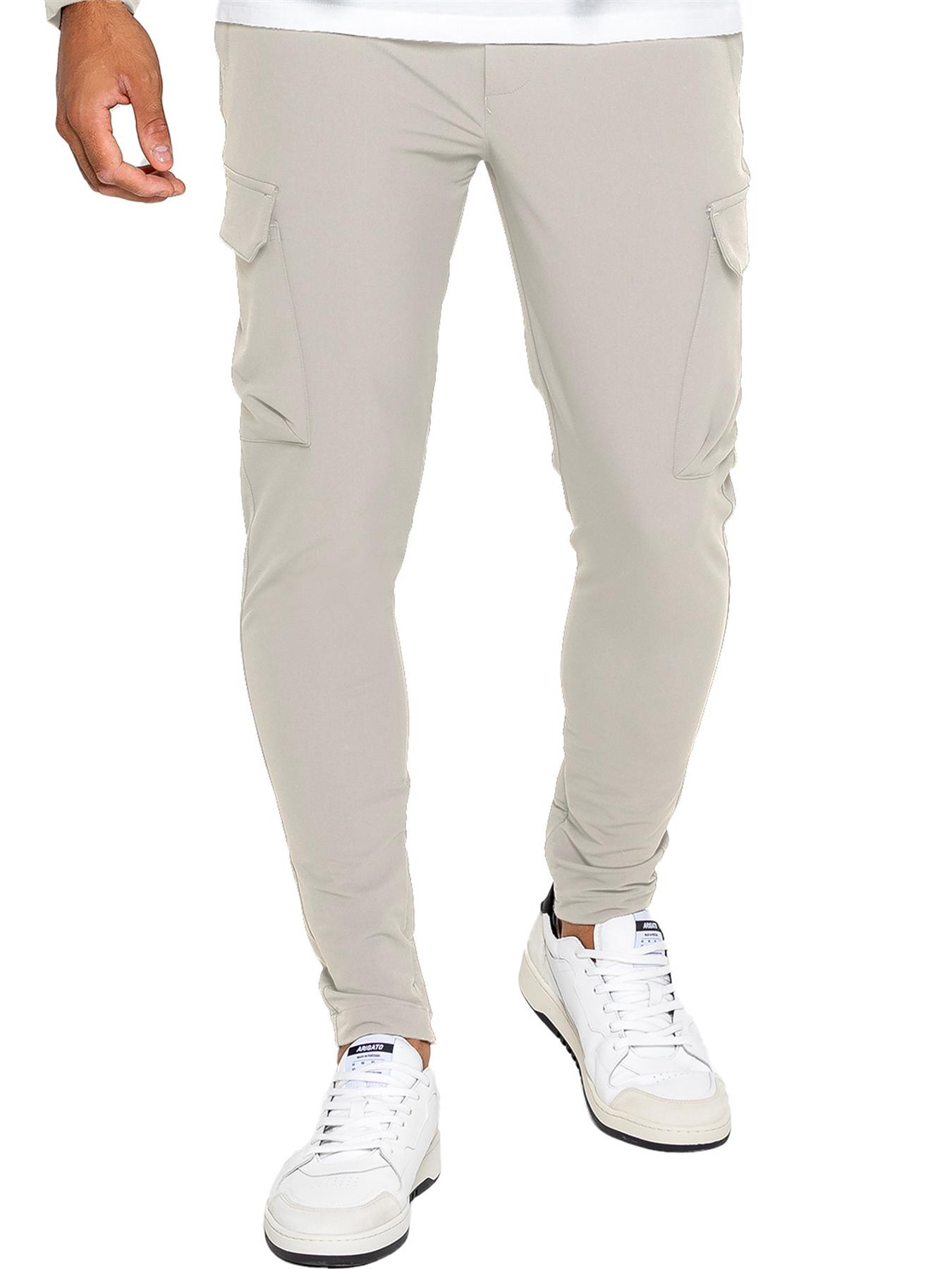Enzo | Mens Cargo Slim Fit Trousers - Stone Nylon - Size 2XL | Enzo...