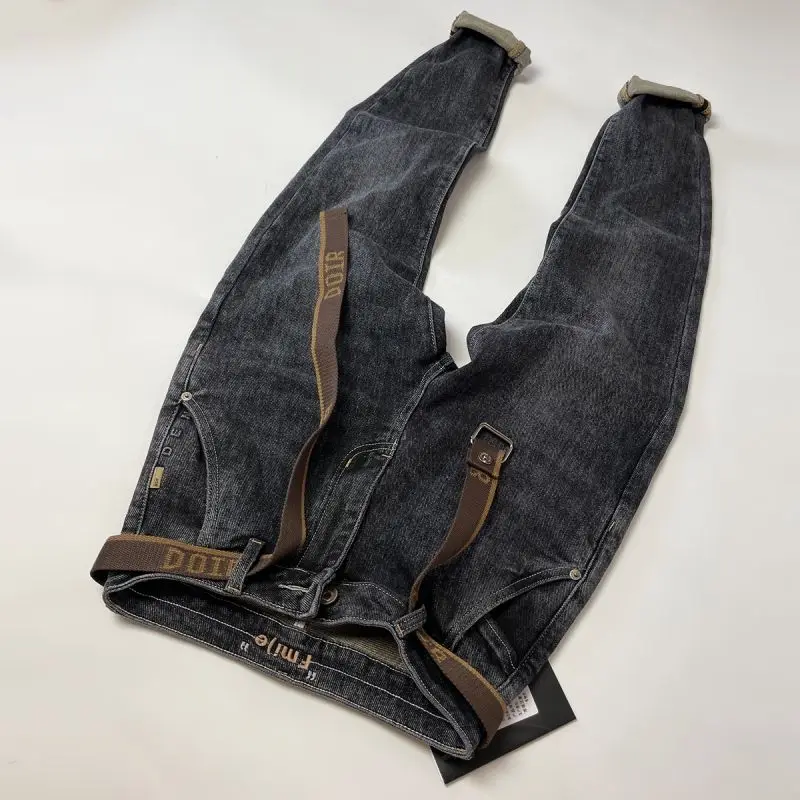 High Quality Fashion Luxury Washed Men's Slim Jeans Elasticity Black and Gray Classic Designer Cargo...