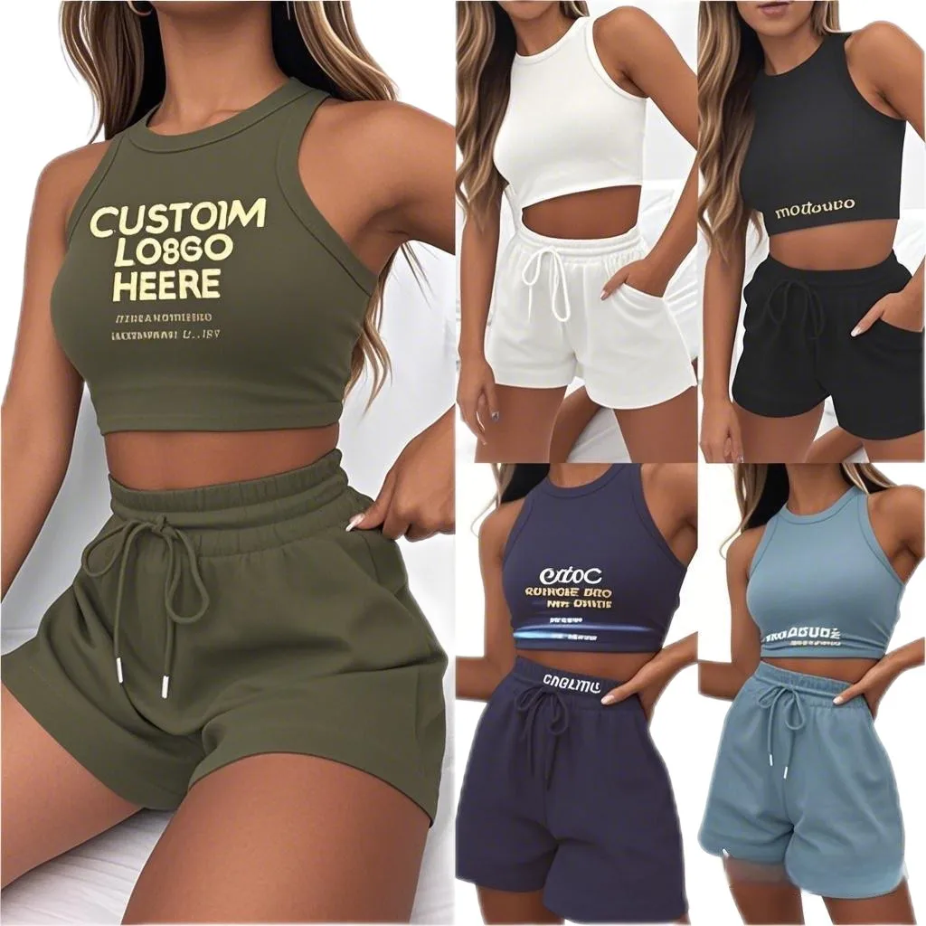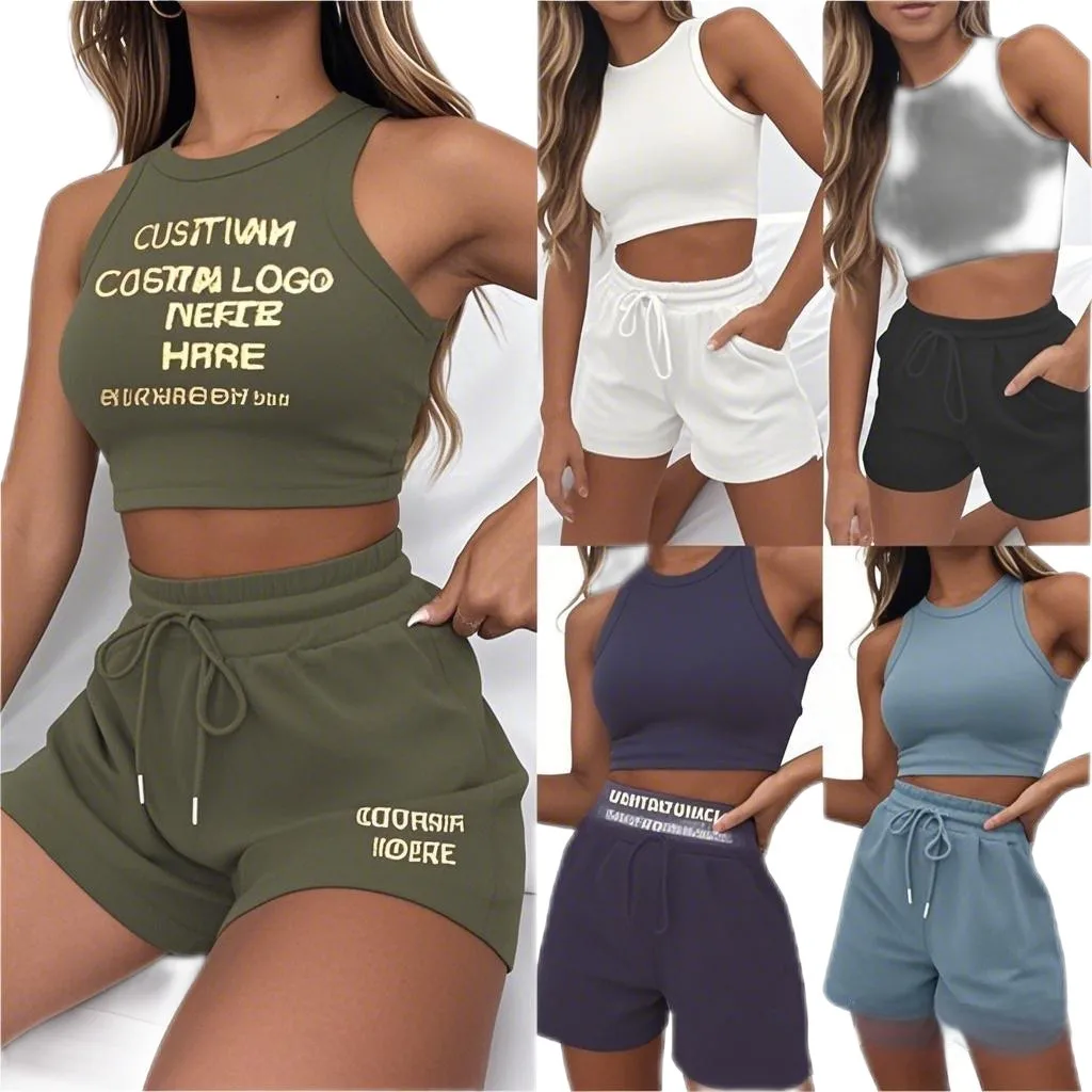 Custom Ribbed Tank Crop Top Two Piece Set Summer Beach Casual Gym O...