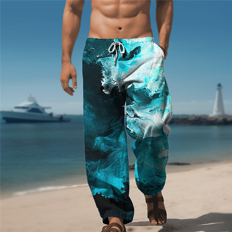 Waves Men's Resort 3D Printed Casual Pants Trousers Elastic Waist D...