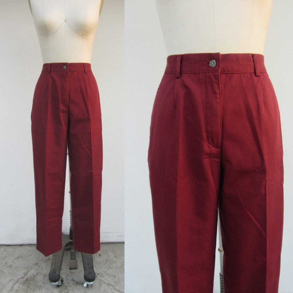 LL BEAN NOS Burgundy Cotton Blend High Waist Tapered Pleated Trouse...