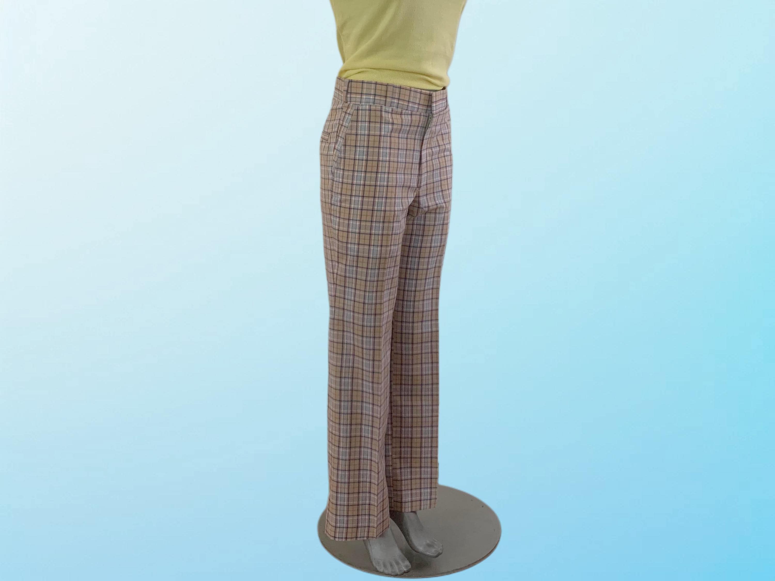 70s Vintage Tartan Plaid Golf Trousers Wrinkle Free High Waisted Me...