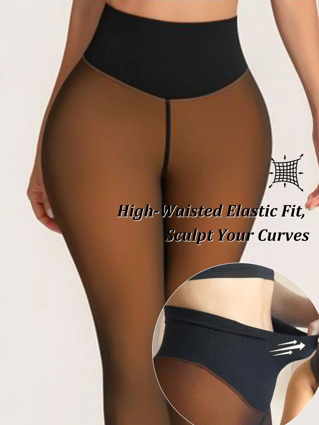 High Waisted Fleece Lined Transparent Skinny Pants Sugar Brown Honey Color Tights Butt Lifting Therm...