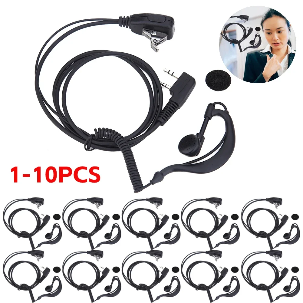 10-1PCS 2 PIN Earpiece Headset PTT MIC 1m Ear Hook Walkie Talkie Earbud Interphone Earphone for BAOF...