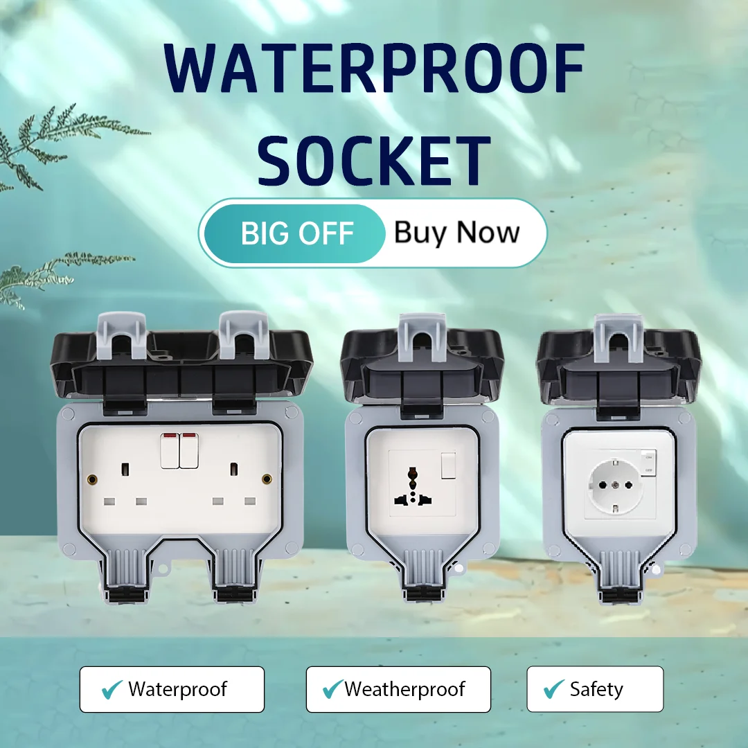 IP66 UK Standard Waterproof Outdoor Wall Socket With Switch for Hom...