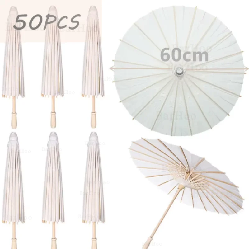 15/24/30/36/50/100PCS Parasol Umbrellas 60cm Wedding Paper Umbrella Photo Props White DIY Umbrella f...