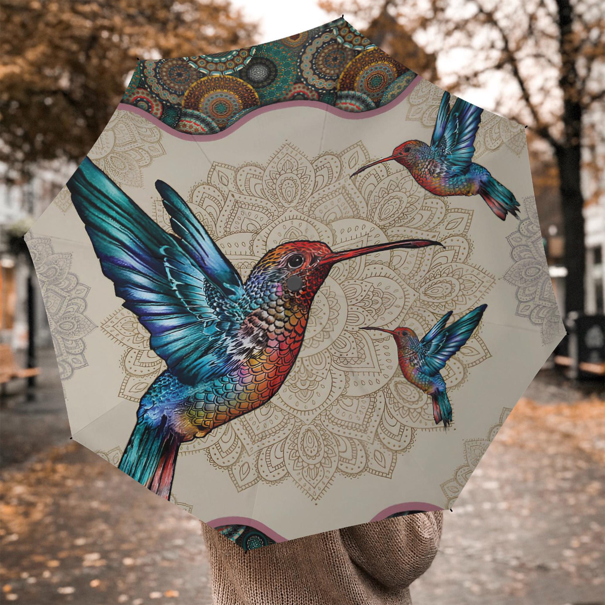 Hummingbird Vintage Mandala Print Umbrellas, Animal Lover Gifts for Her, Windproof Umbrella, Polyest...