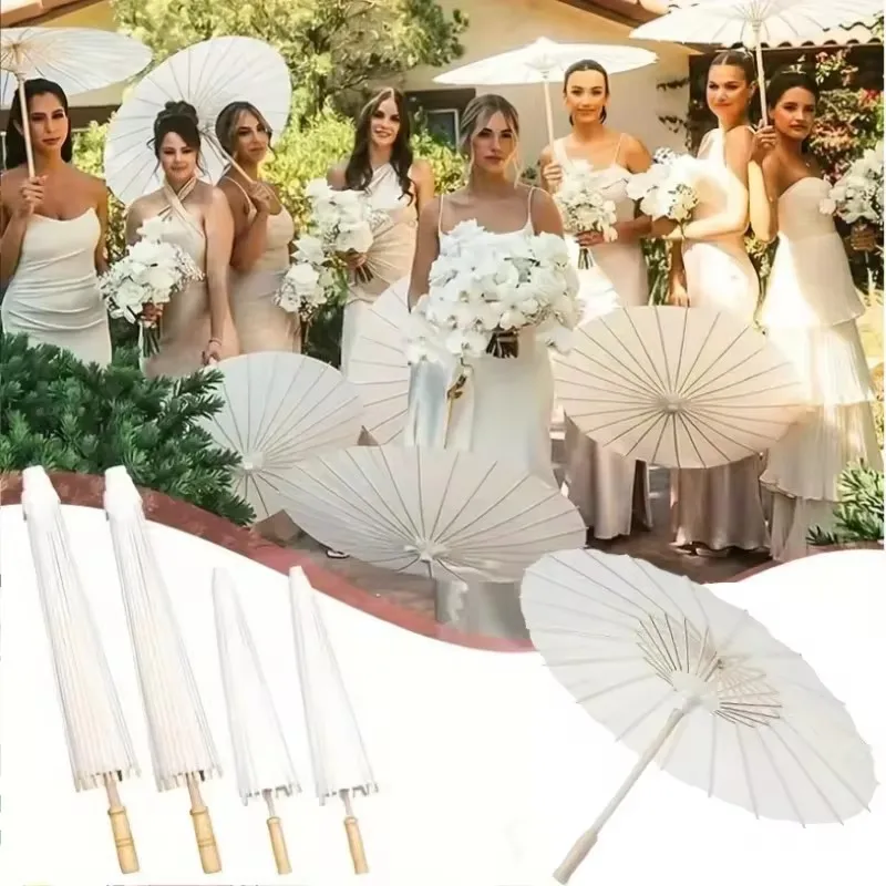 20cm-84cm Parasol Umbrellas Wedding Photo Cosplay Prop Paper Umbrella DIY Hand-painted White Umbrell...