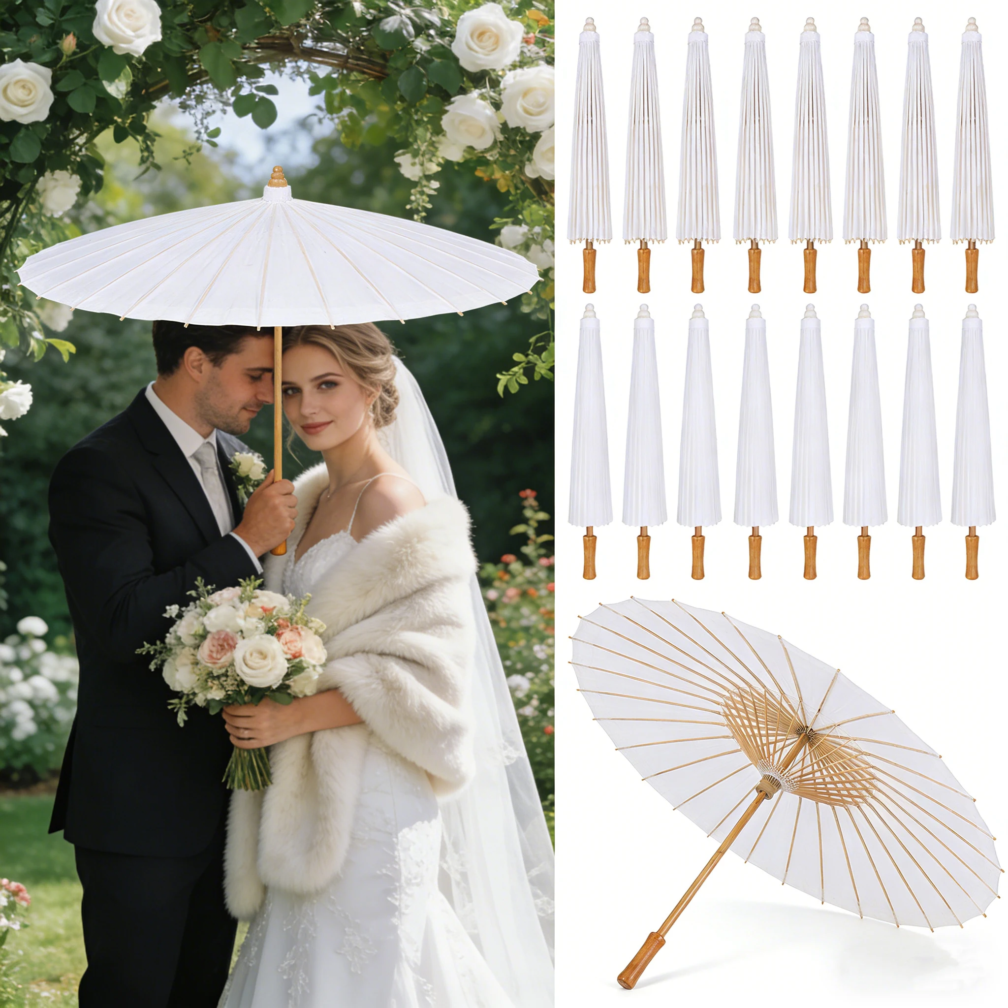 Paper Parasol Wedding Paper Umbrella Party Favor 60/80cm Bamboo Umb...