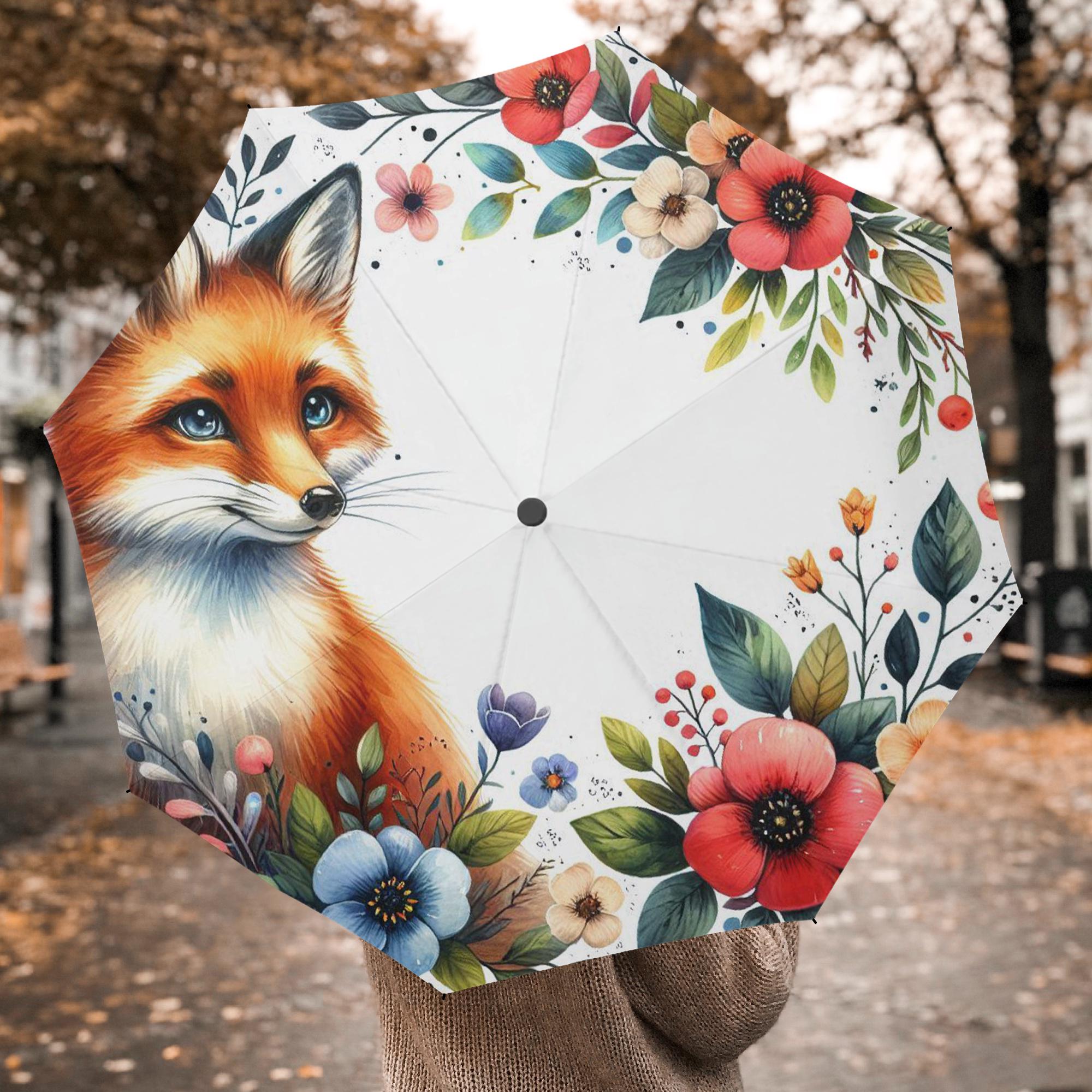 Fox umbrella with flowers, animal umbrella, gift for animal lovers,...