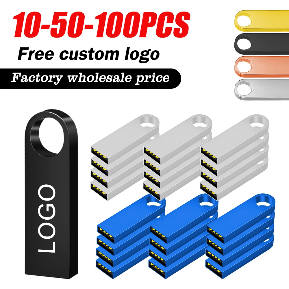 10/50/100PCS Flash Drives Metal 64GB Free Logo Black 32GB Pen Drive...