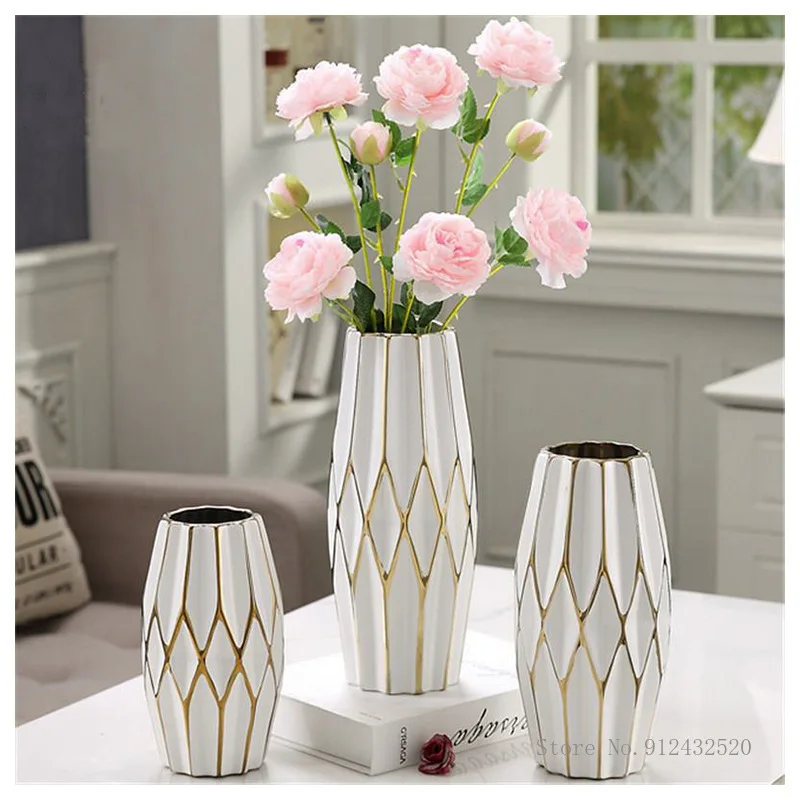 • White Electroplating Gold Rhombus Ceramic Vase, Creative Simple Flo...