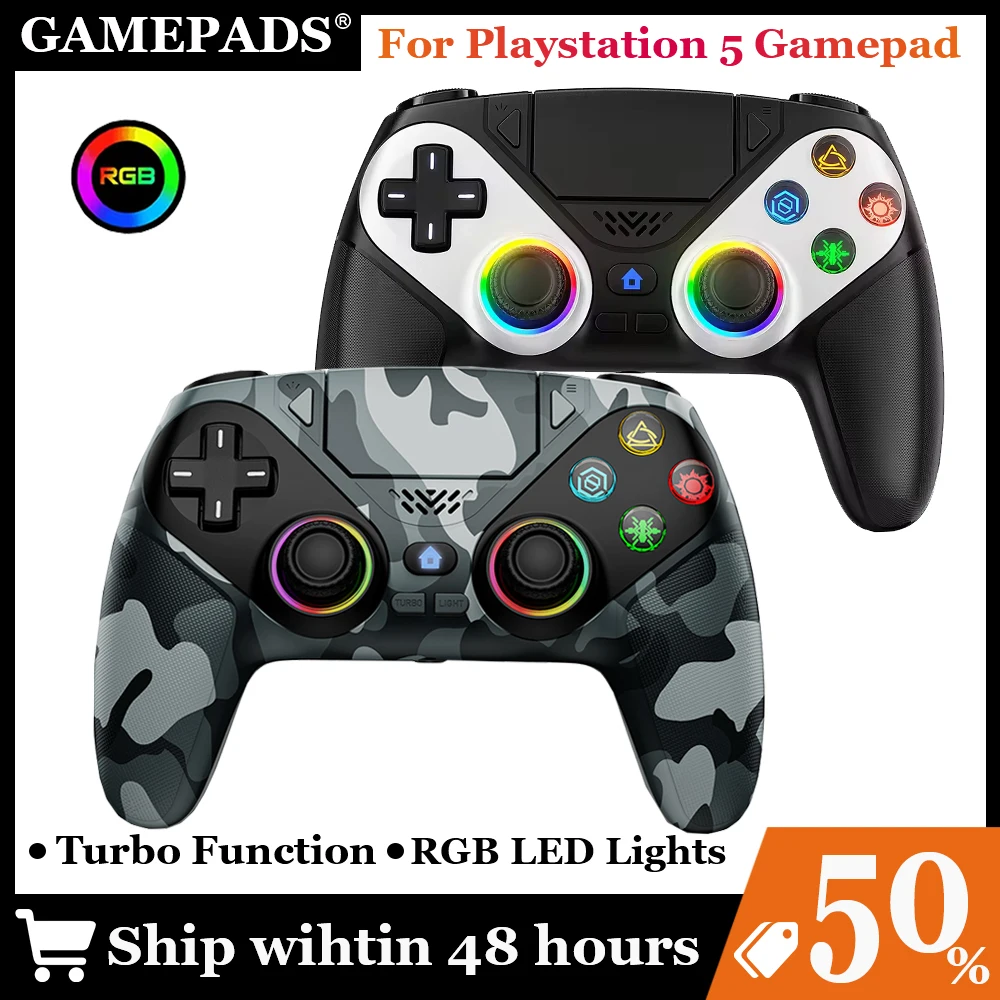 Wireless RGB Light Gamepad For Playstation 5 Controller Console Gaming Controller With Turbo Dual Se...