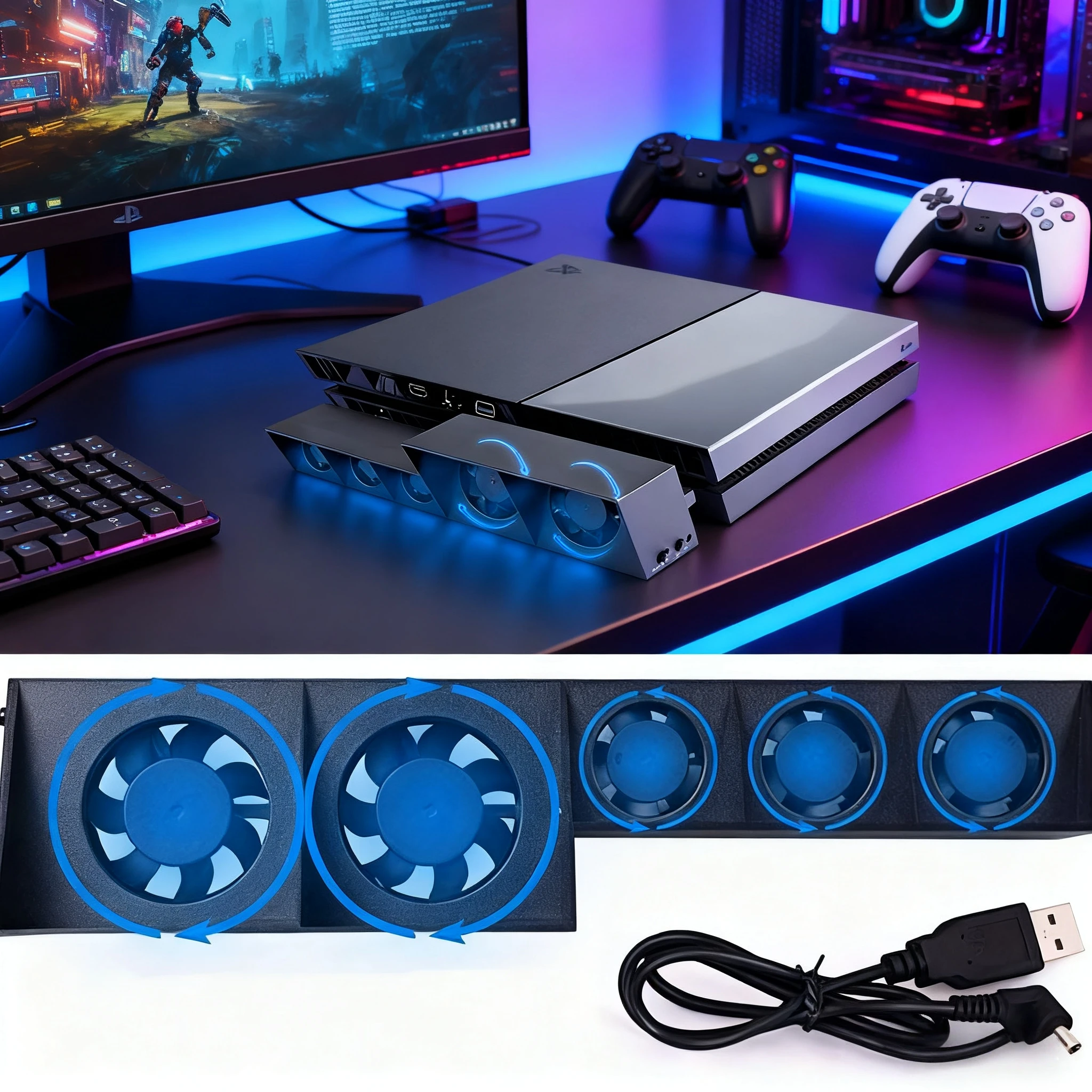 Gaming Cooler Fan Efficient Cooling System with LED Light Noise Reduction for PS5 Slim Cooling Fan D...