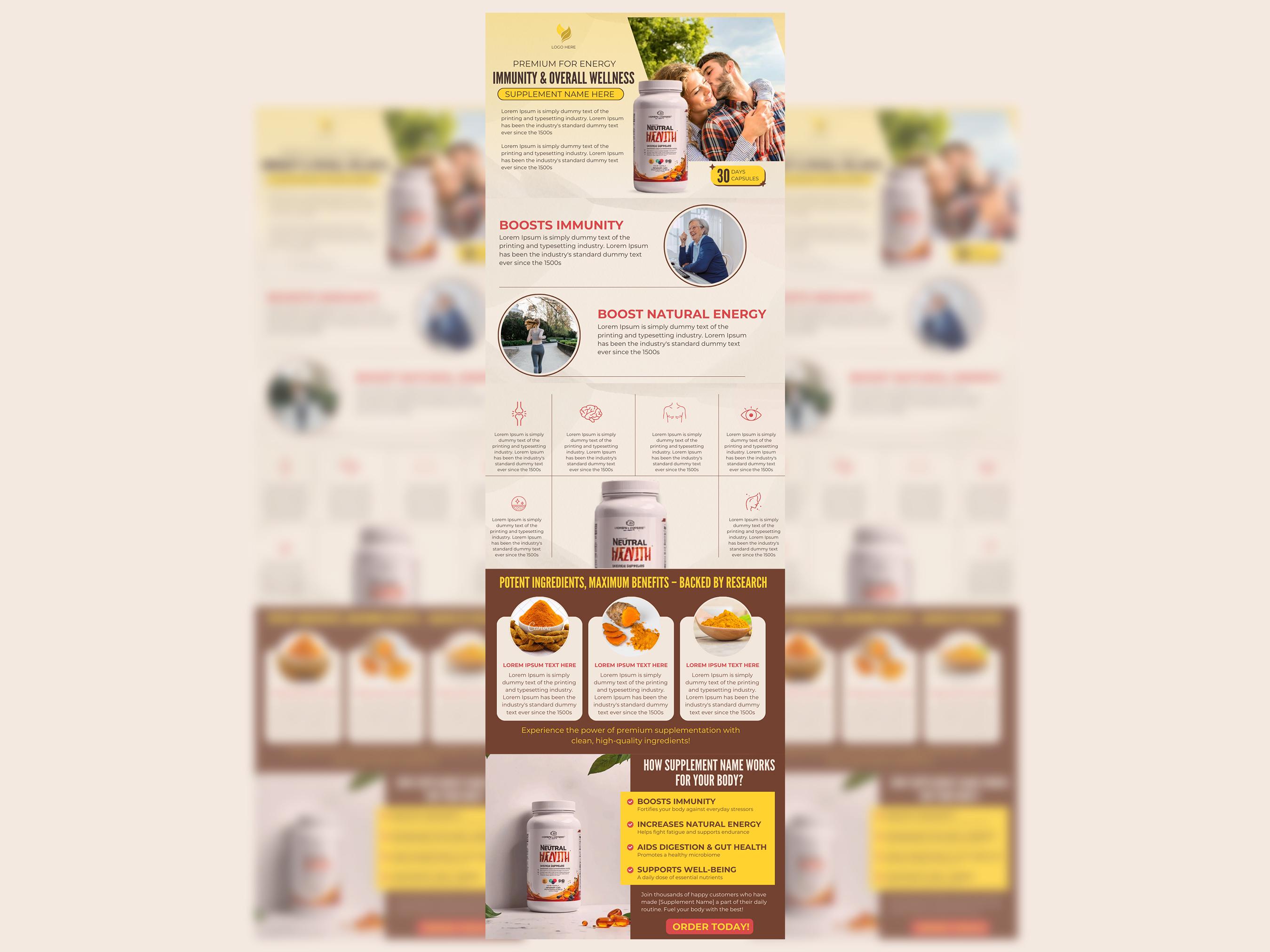 Easy and fully editable 5 pages amazon A+ content/EBC design templates for health supplement and rel...