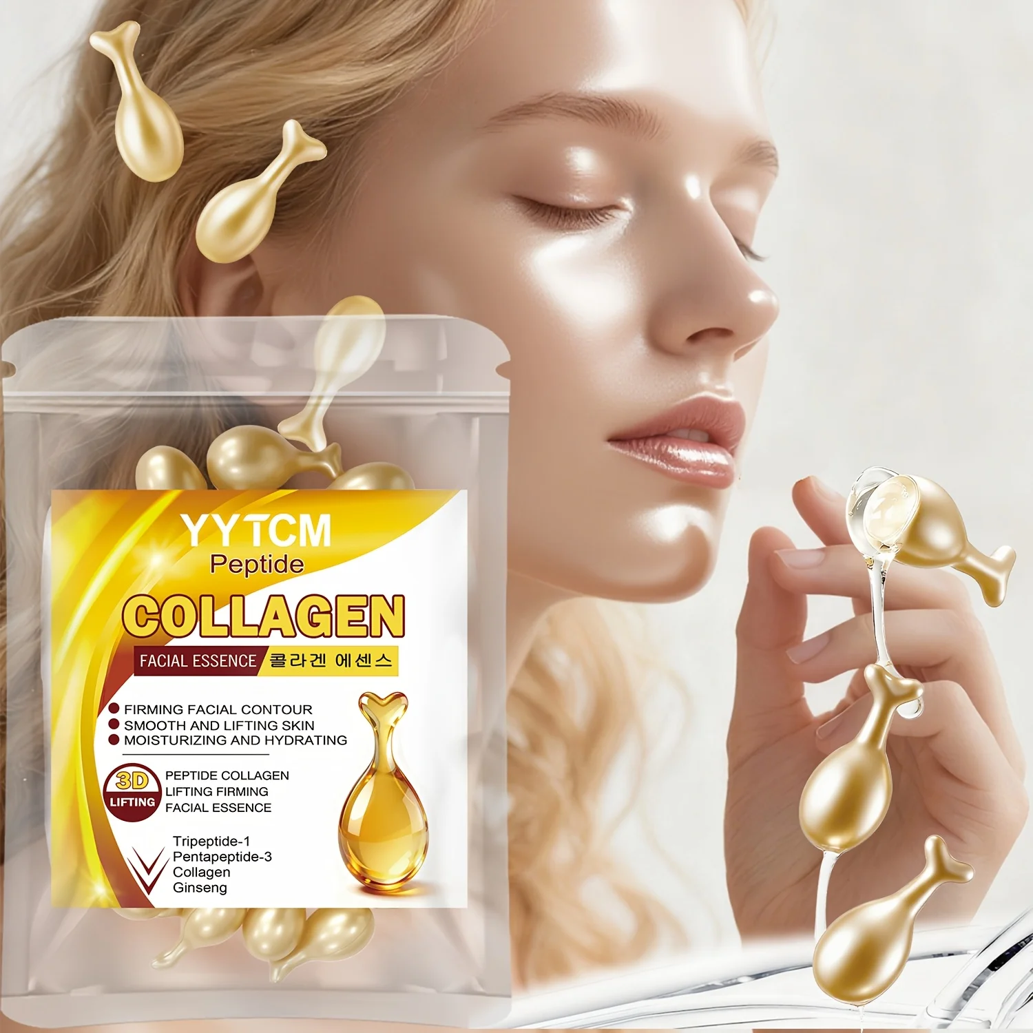 Polypeptide Collagen Essence Capsules, Moisturizing and Firming Essence, Smooths Skin, Contains Squa...