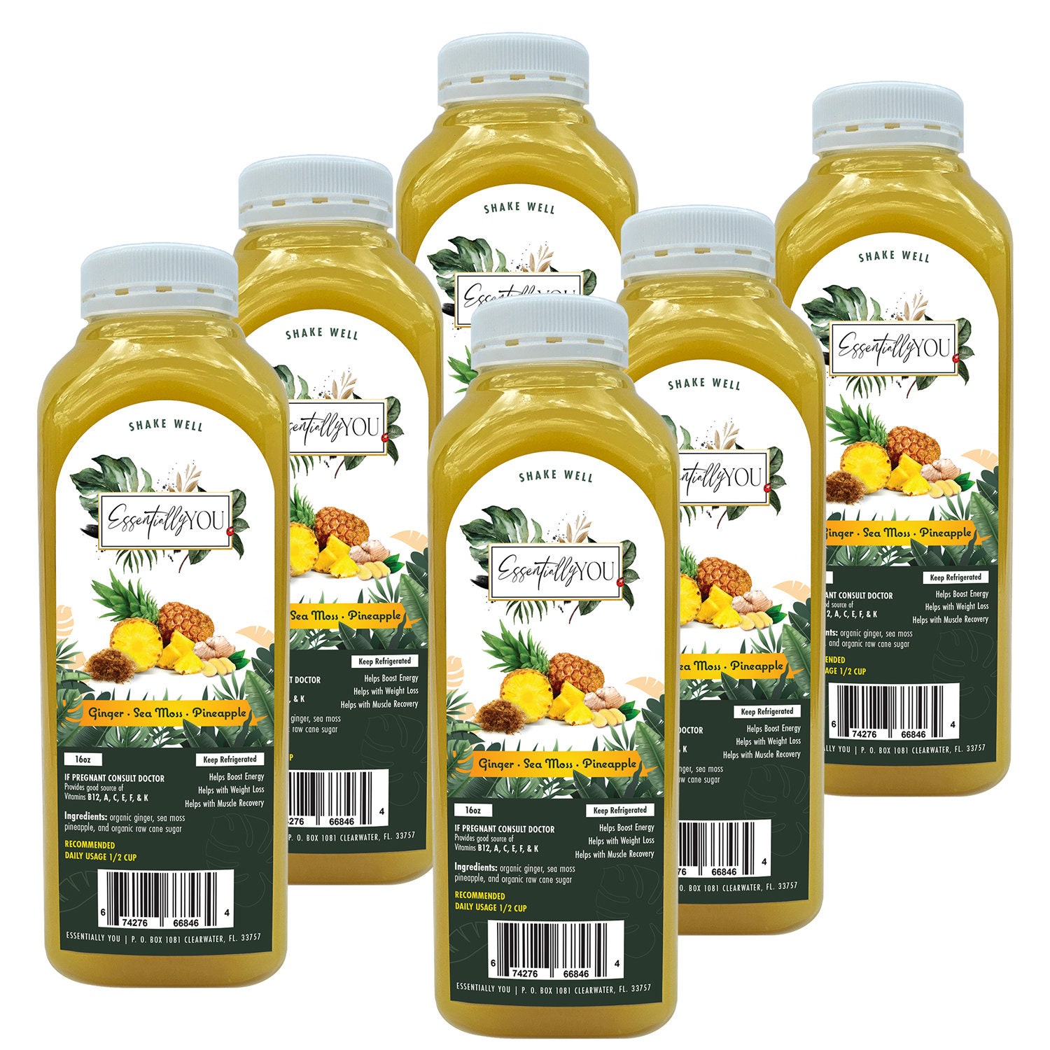 Sea Moss Juice: Pineapple, Organic Ginger, Irish Moss (16oz, 6-Pack...