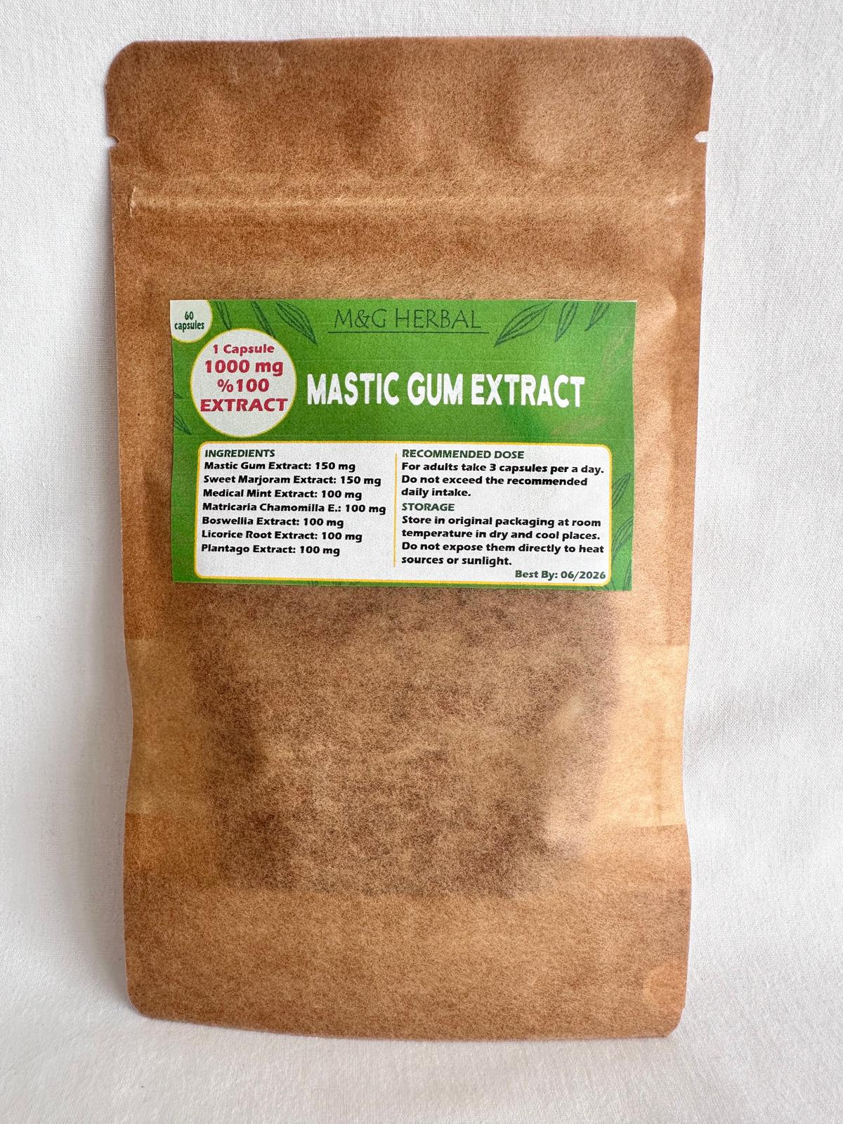 MASTIC GUM Mastic Gum Extract: 150 mg Sweet Marjoram Extract: 150 mg Medical Mint Extract: 100 mg Ma...