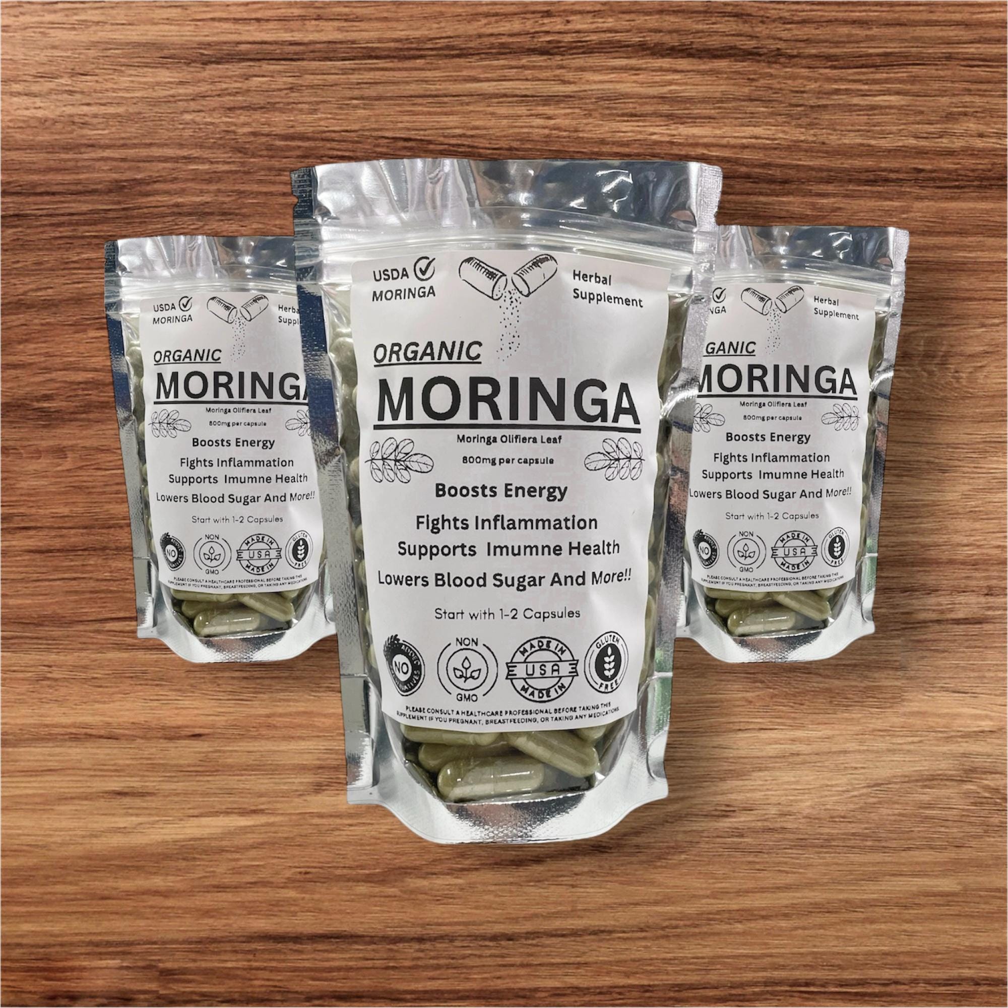 "Organic Natural Moringa Supplements Made with 100% Moringa Leaf from the Moringa Oleifera Tree...