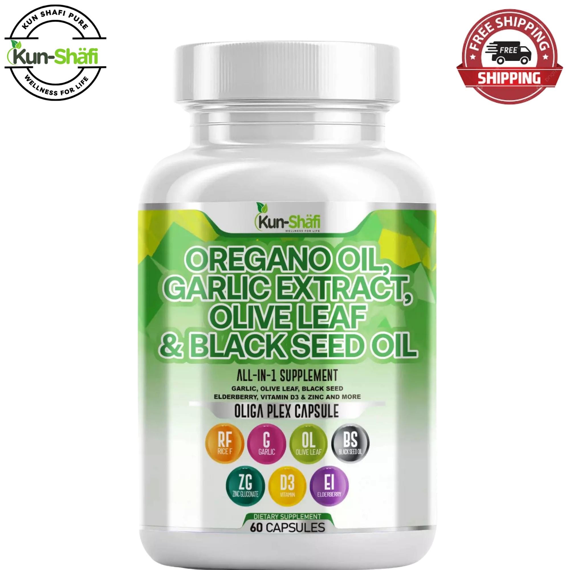 Oregano Oil, Garlic, Olive Leaf & Black Seed Oil Capsules - 60 ...