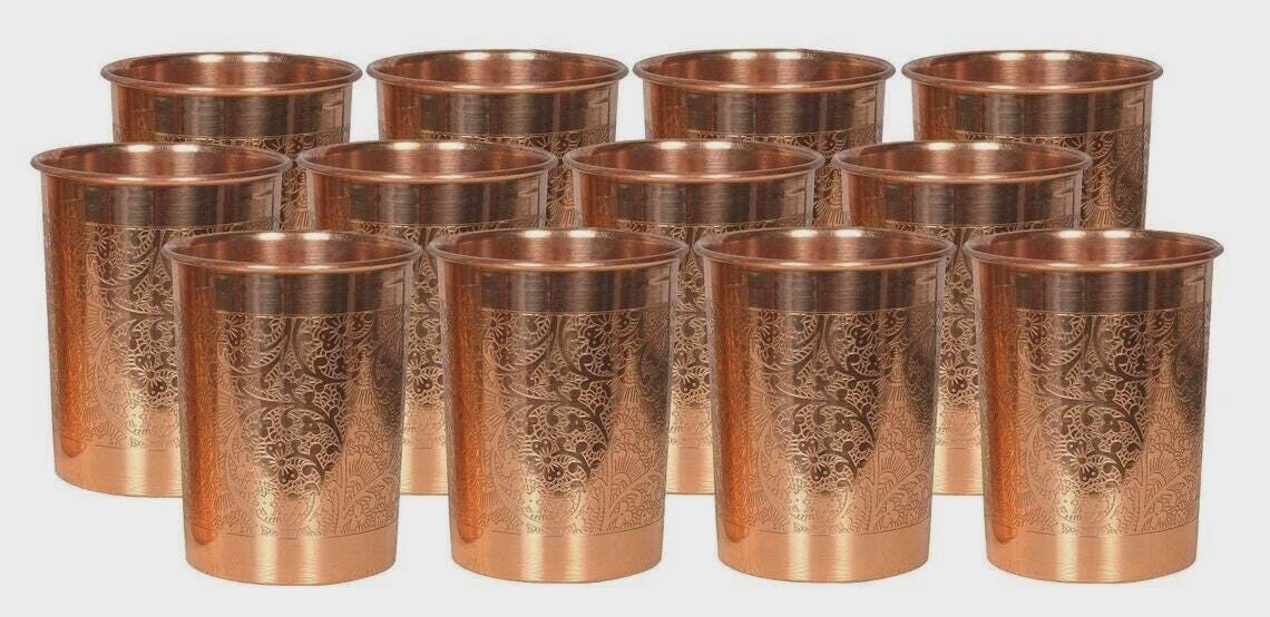 Item Description 100% Pure Copper Water Drinking Glass Ayurvedic Health Benefits Set Of 12 12 reason...