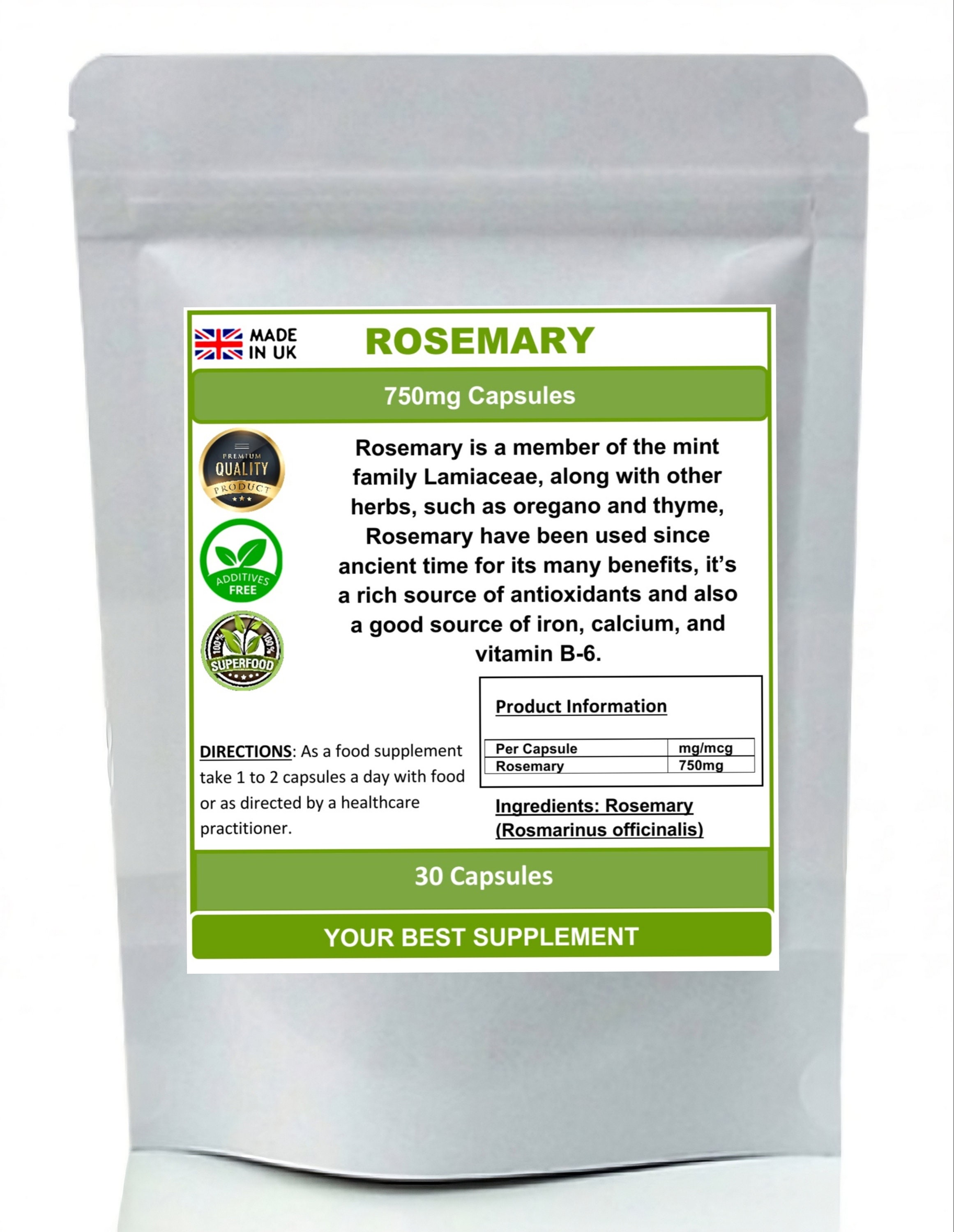 Rosemary Capsules 750mg High Strength Rosemary High Strength Supplement . Each capsule contains pure...