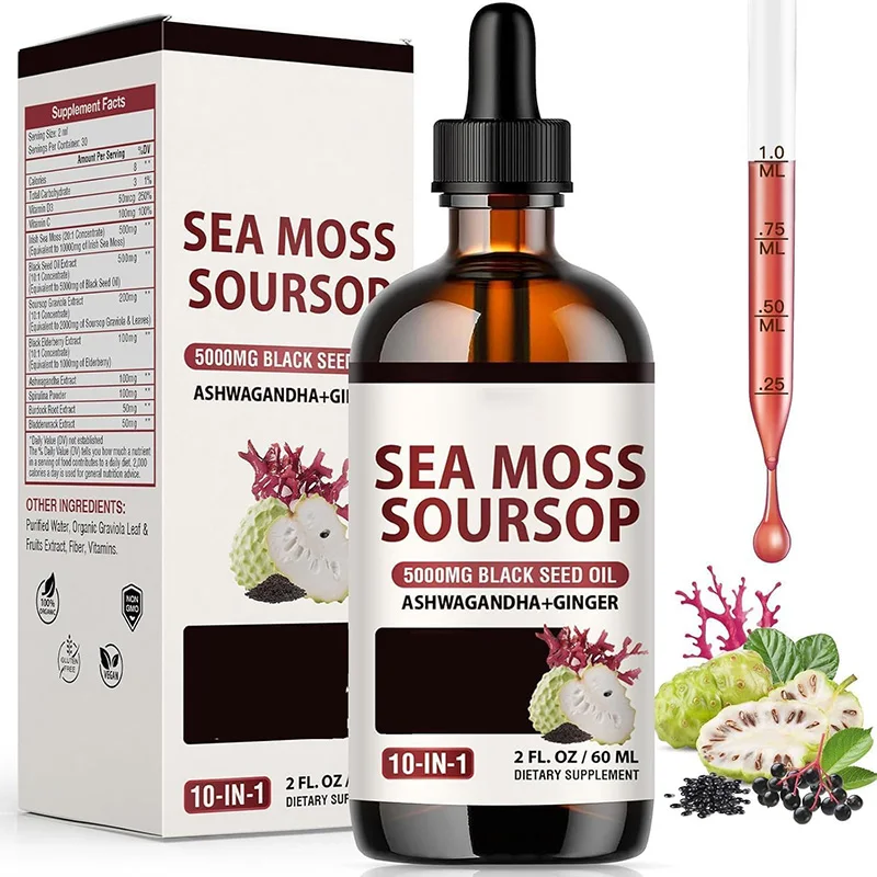 60mL Soursop Moringa Sea Moss Liquid Drops Black Seed Oil Turmeric ...