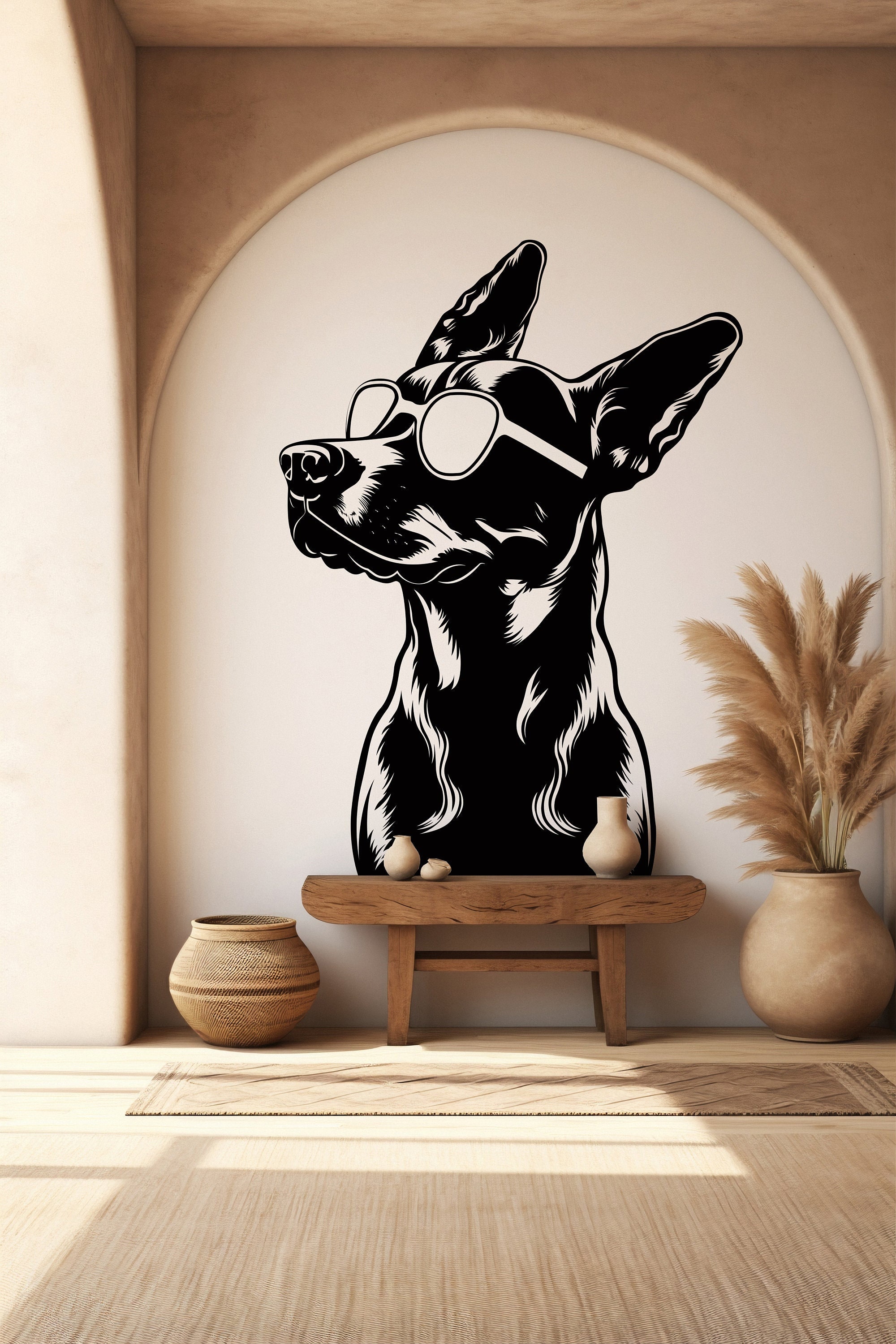 Happy Dog with Sunglasses Dog wall decal Dog decor Dog kids Dog wal...
