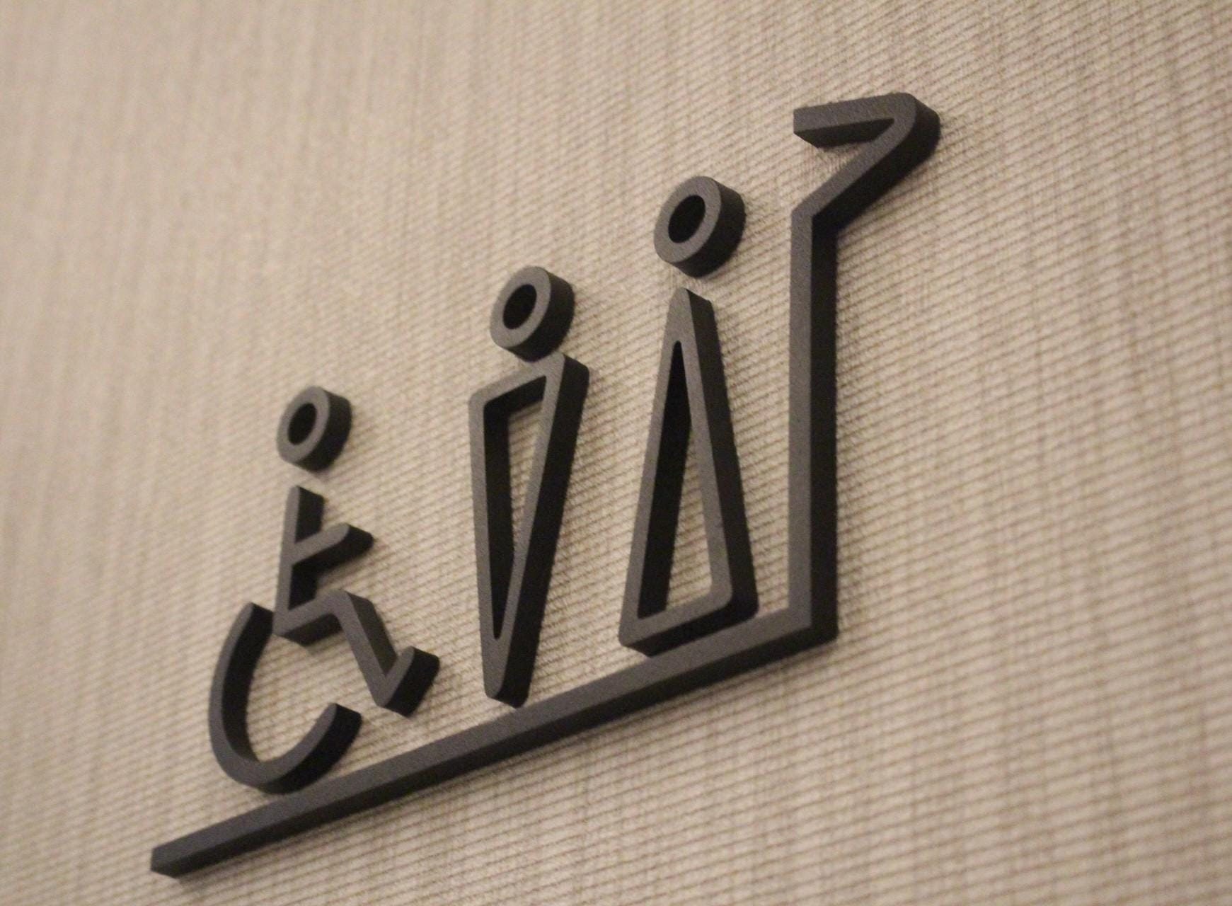 Modern Restroom Logo, 3d Bathroom Sign, Man Women Wheelchair, Metal Washroom Sign, Toilet Sign, WC S...