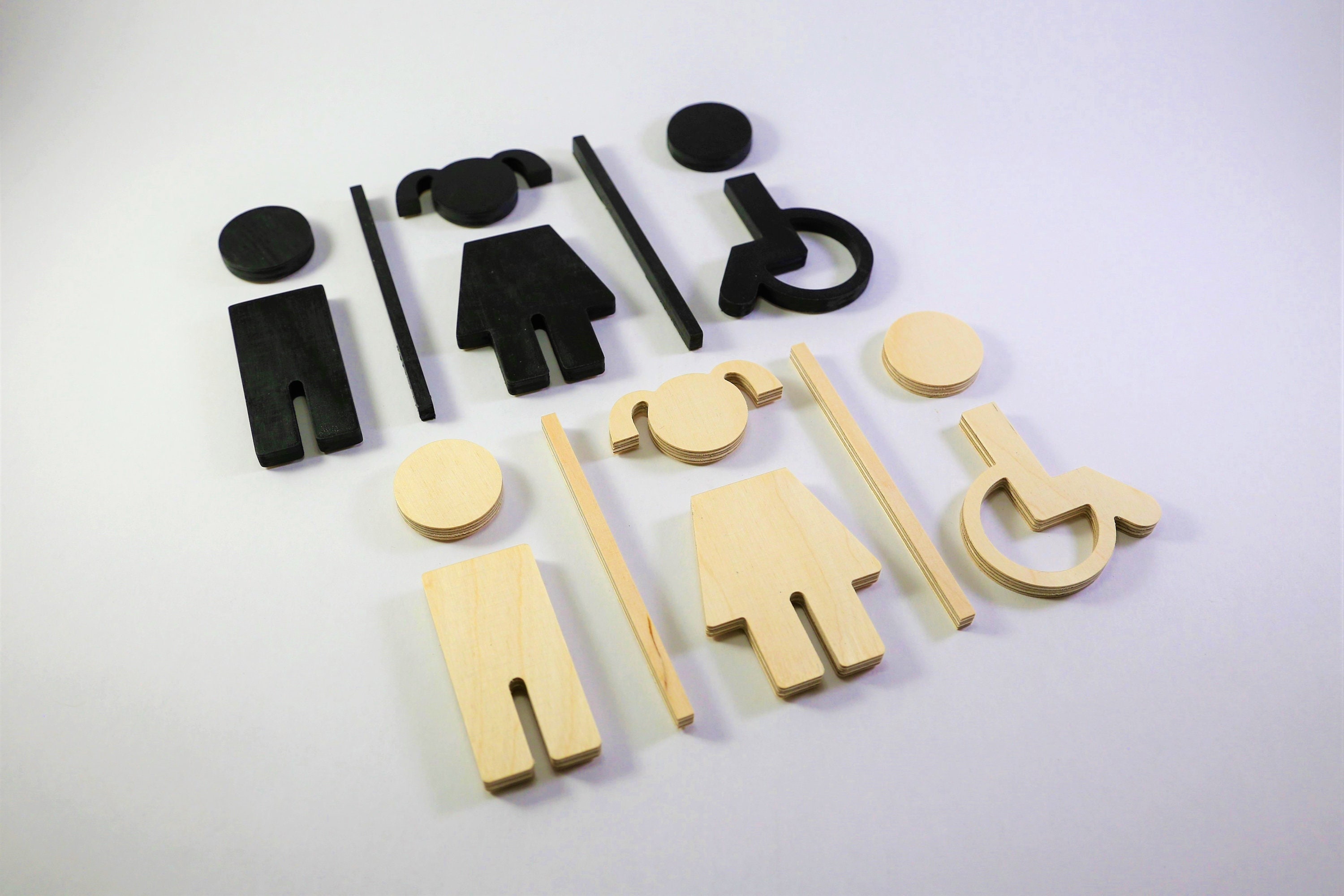 "Wood Restroom Sign Materials: wood 4 mm and acrylic 3 mm/0.1''. SIZE: - 3.9\"*3.9\" ...