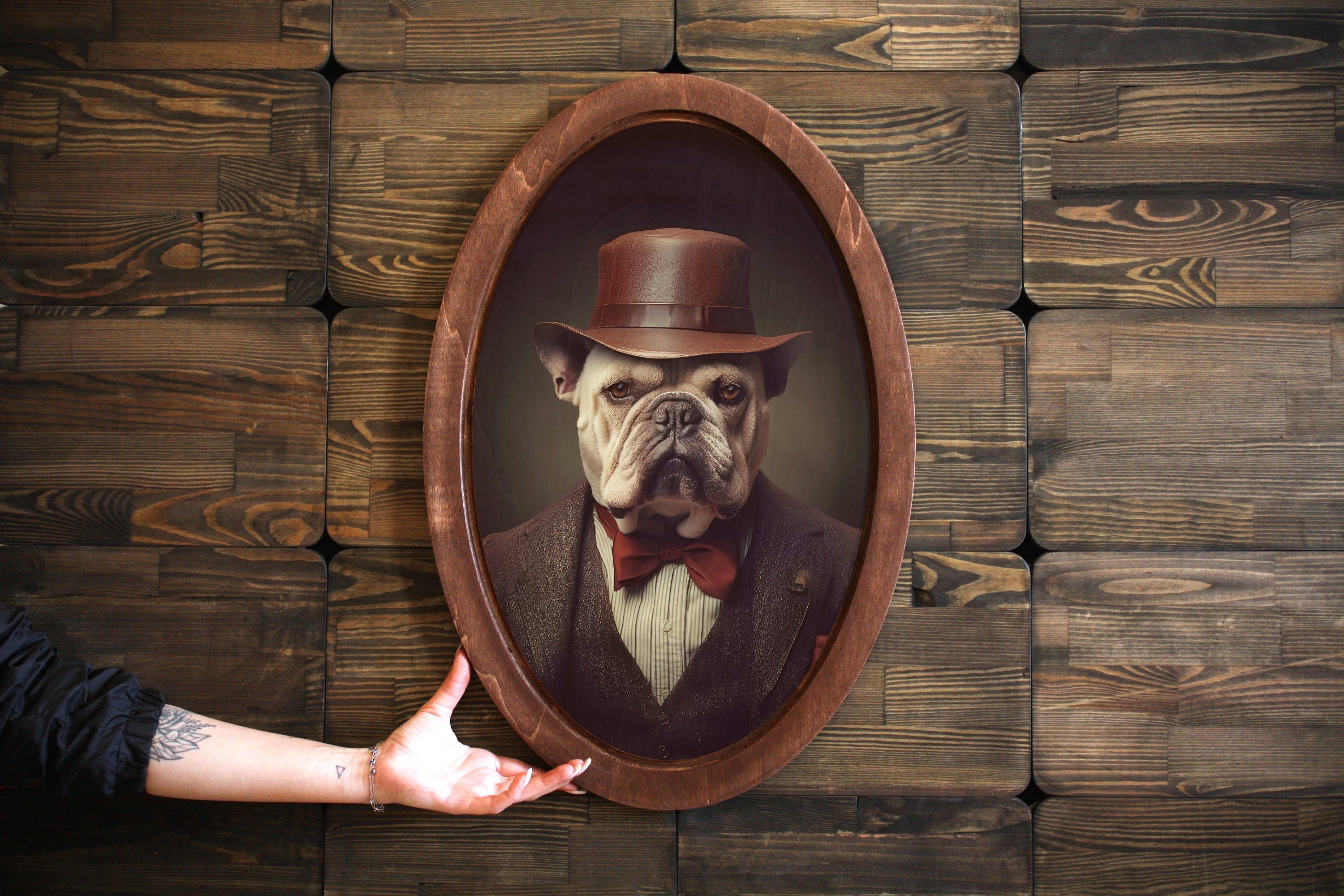 Bulldog Portrait,Wall plaque,Wooden Plaque,Wooden Plaque,Oval Art,O...