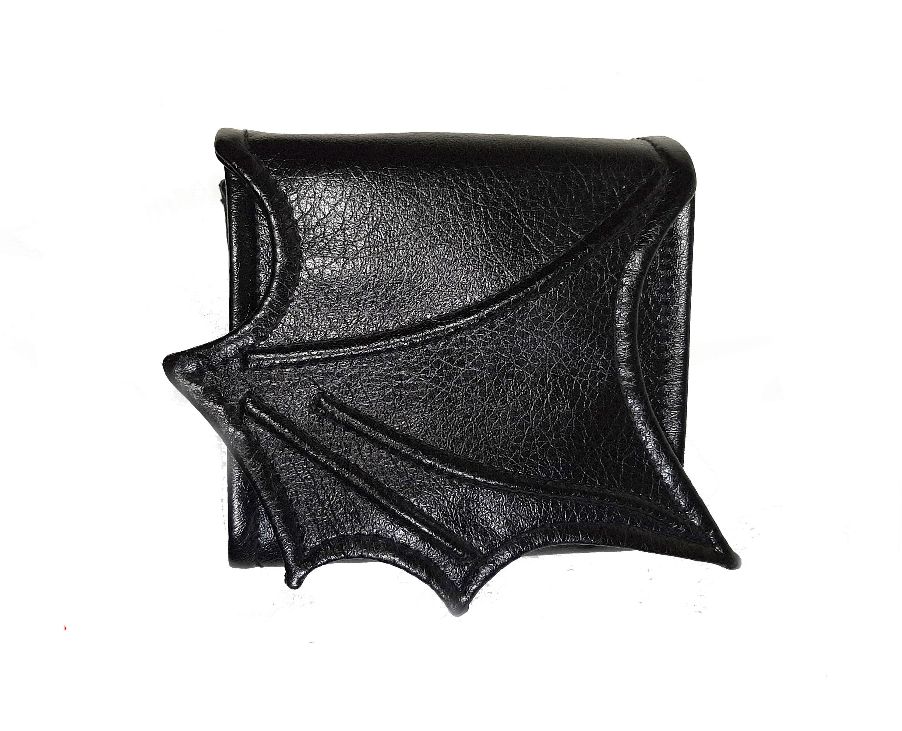 Black wallet, Vegan wallet, Accordion wallet, Women Wallet, Black faux leather, Bat wallet, 3 card s...