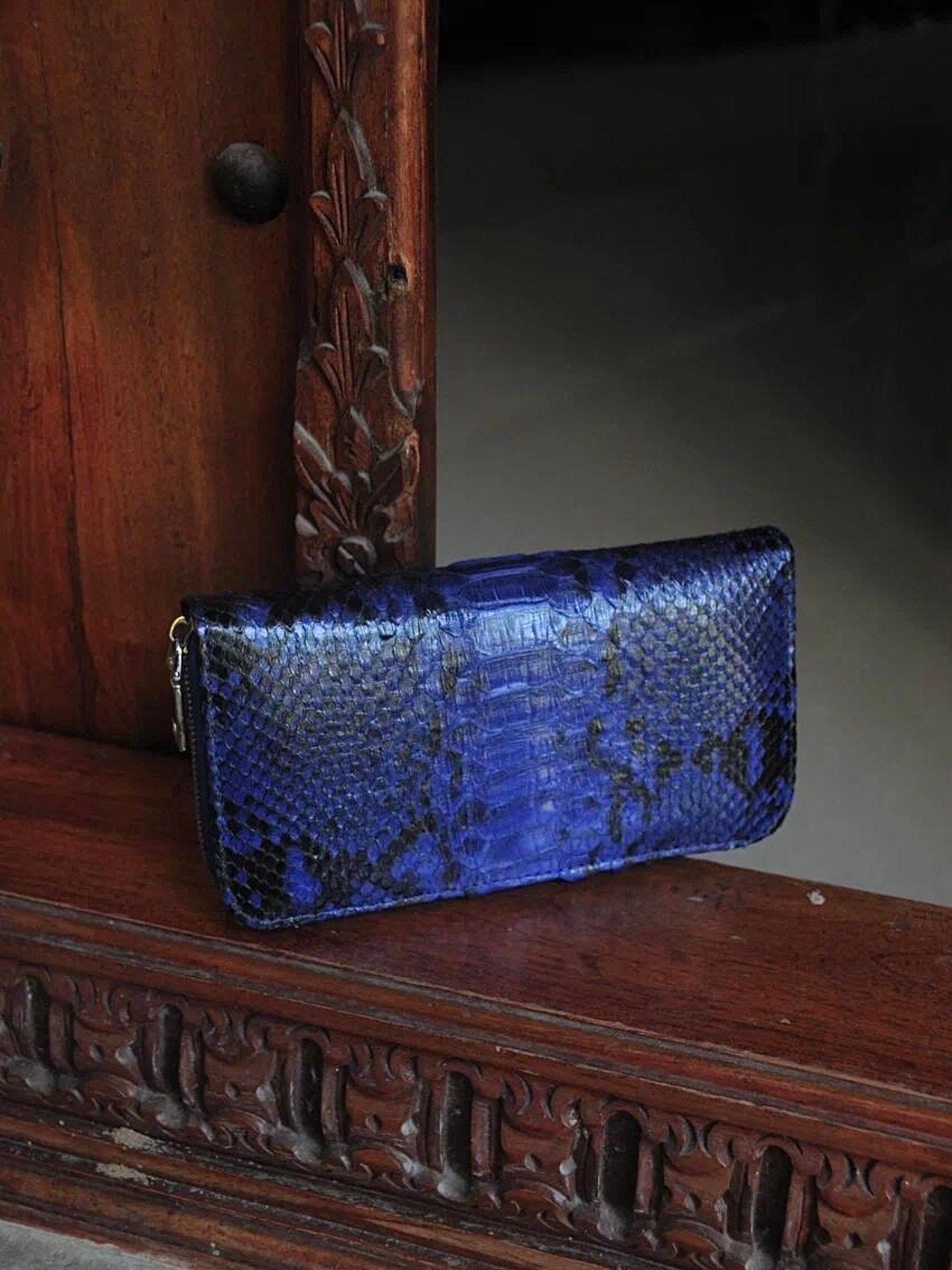 Wallet genuine python skin electic blue color with motif, women wal...
