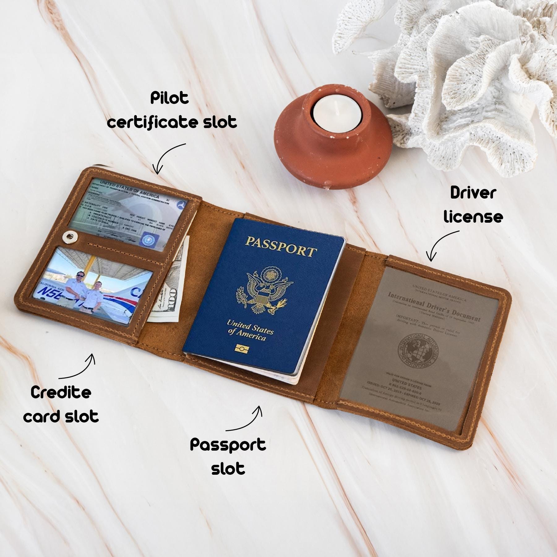 Leather pilot document wallet, Pilot document holder, Pilot license...