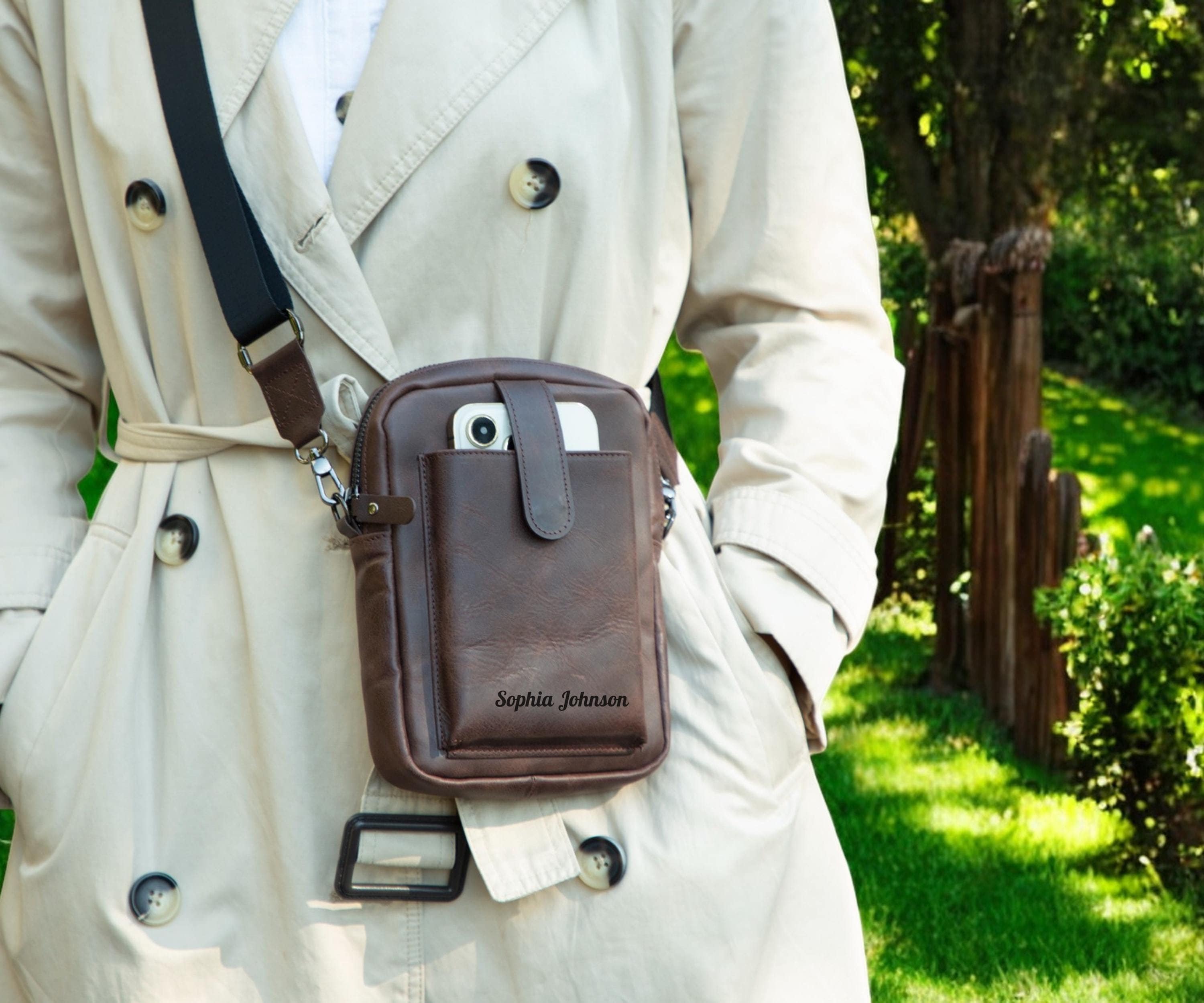 Leather Crossbody Phone Bag, Mobile Phone Leather Pouch, Leather Pa...