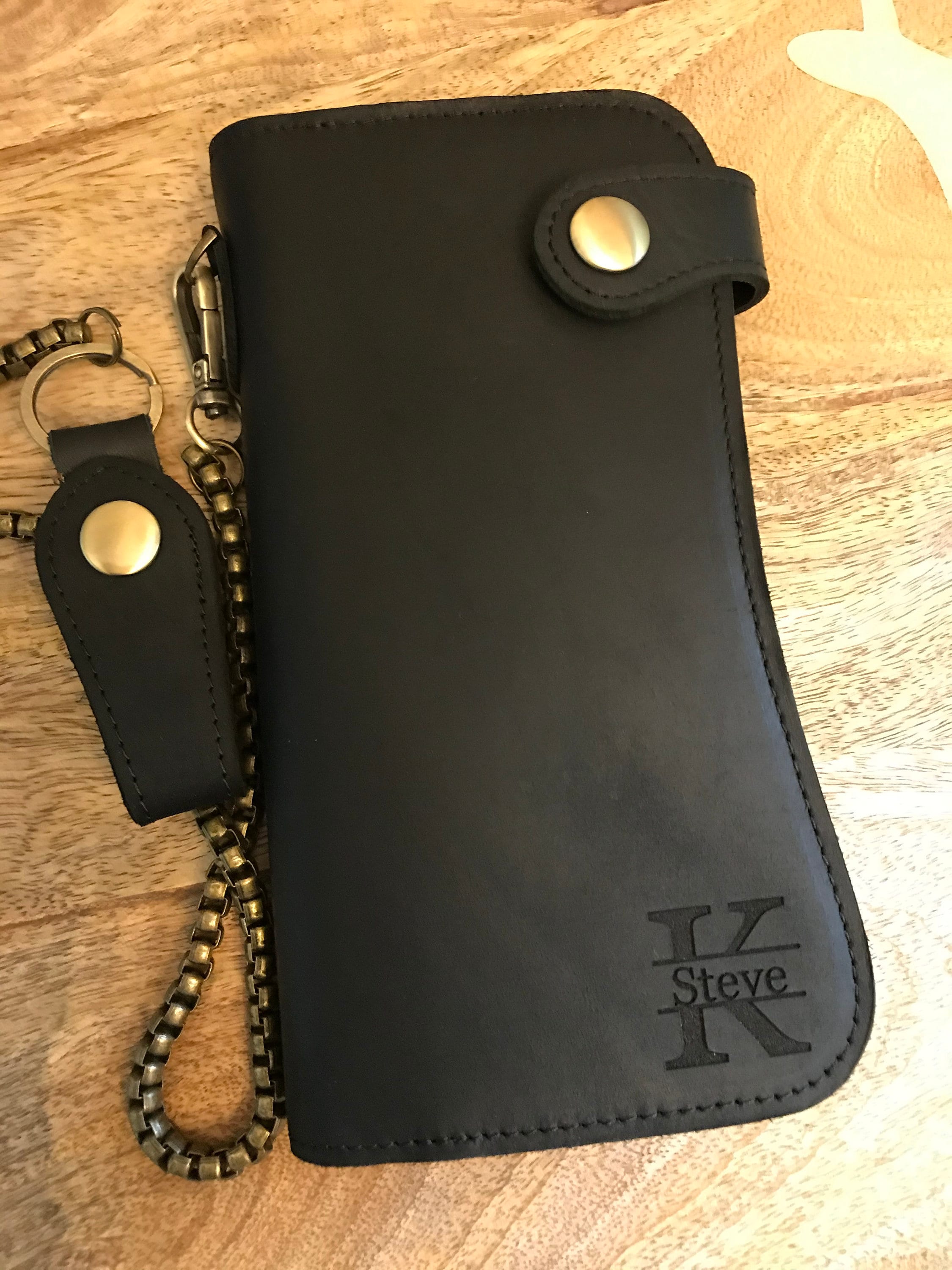 "Mens Personalized Black Leather Wallet Mens Wallet Leather Chain Wallet Personalized, Personal...