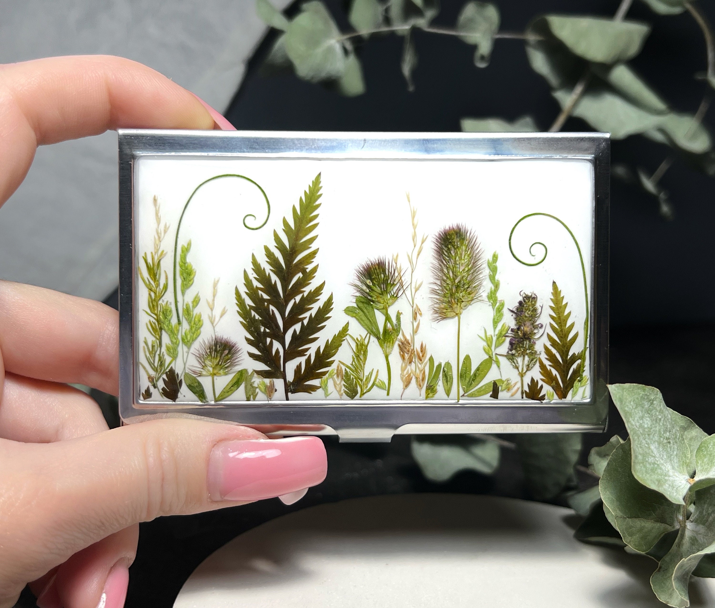 Handmade business card holder with real pressed dried flowers. I use only real flowers. Each product...