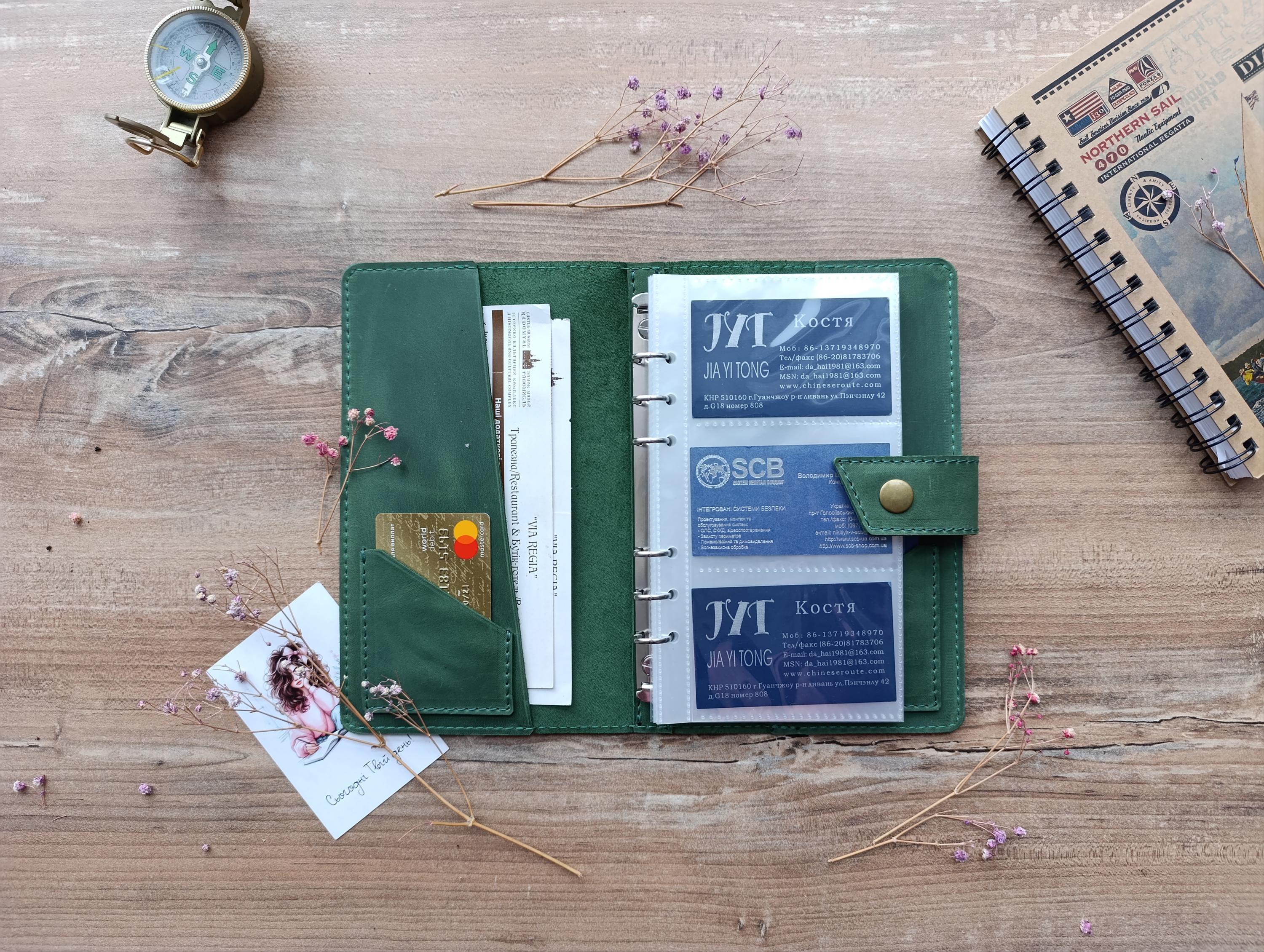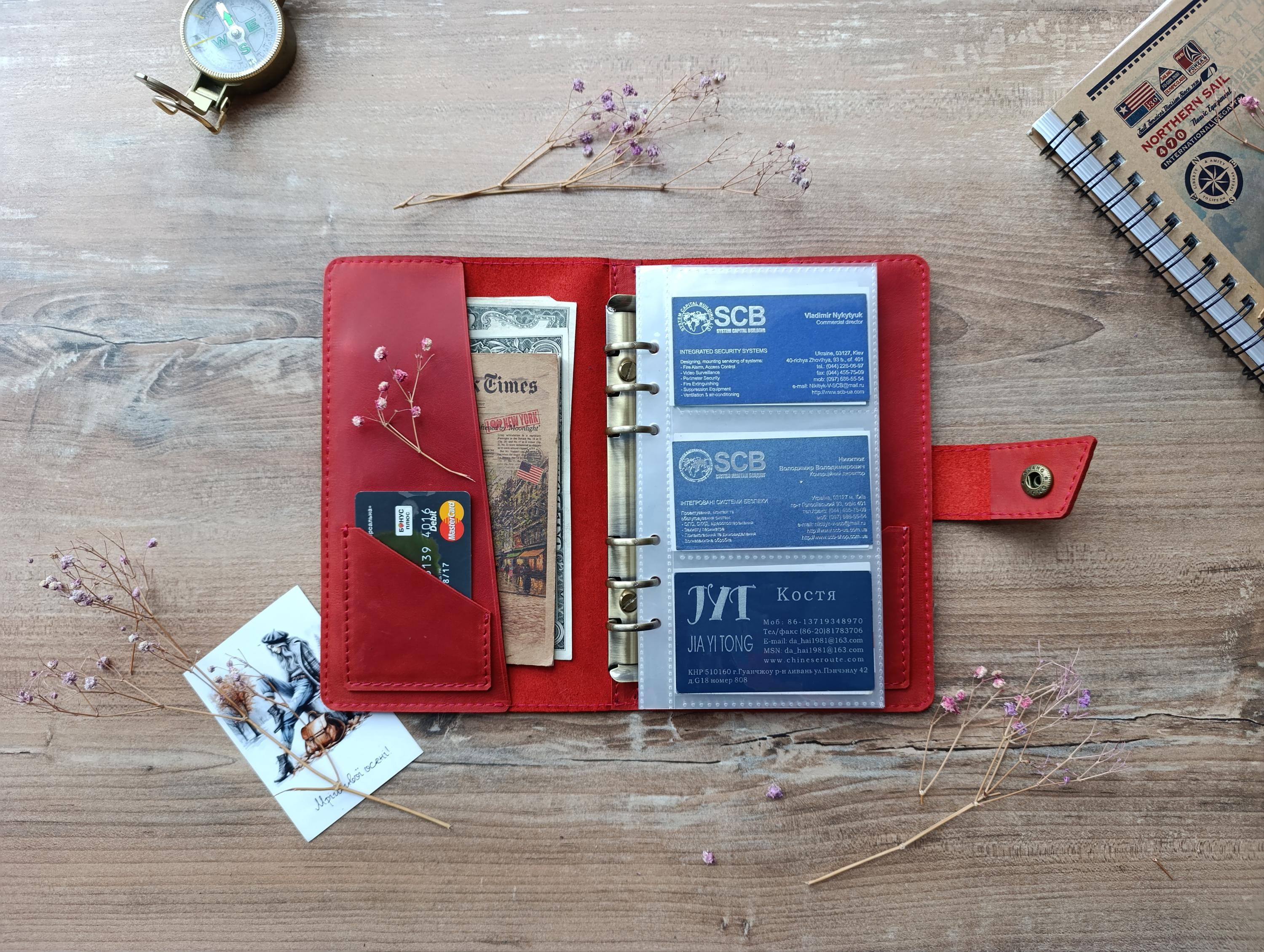 Business card organizer, Business card binder, Leather Business car...