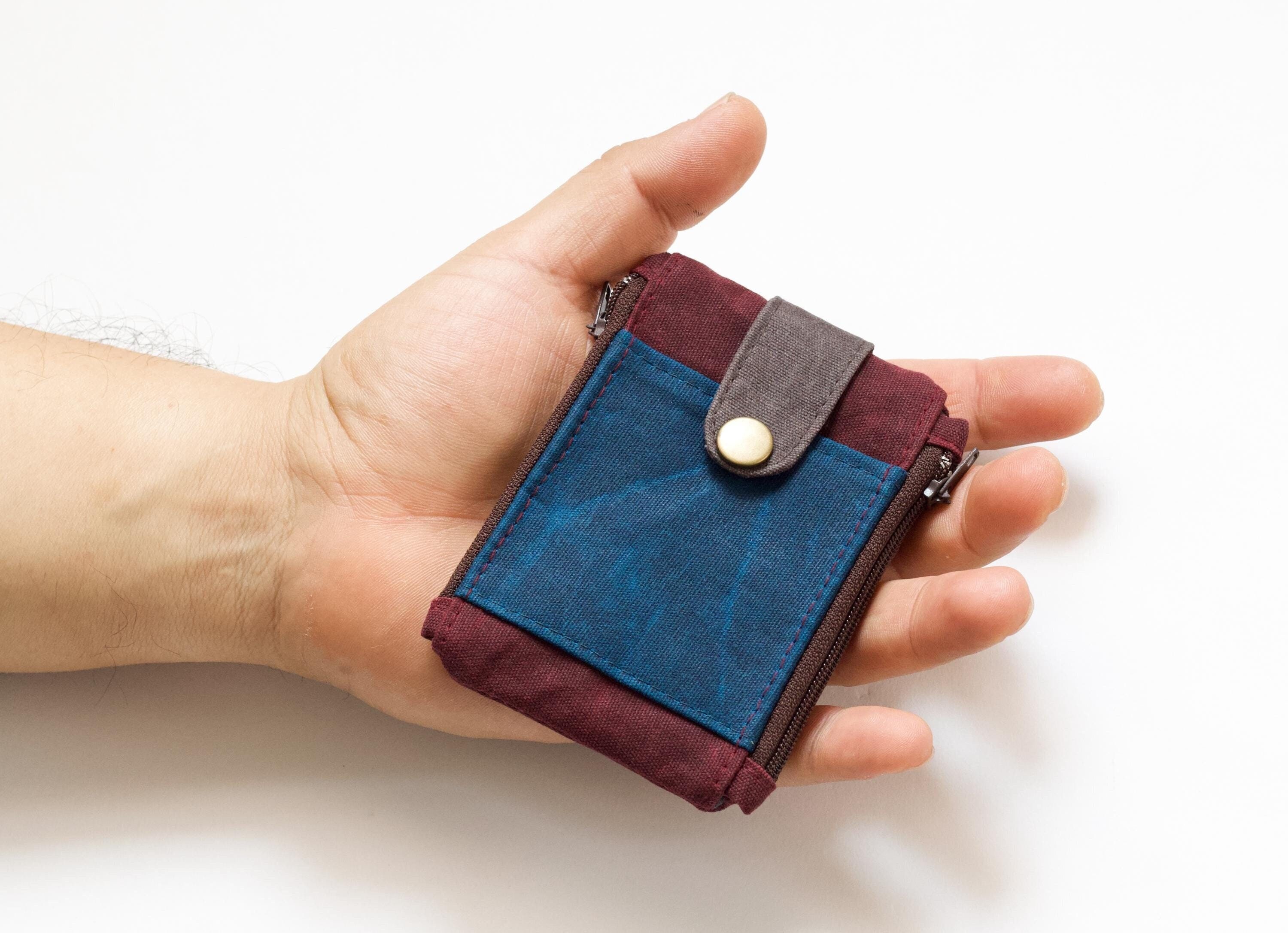 mini waxed canvas wallet, EDC wallet for men, slim wallet pouch, do...