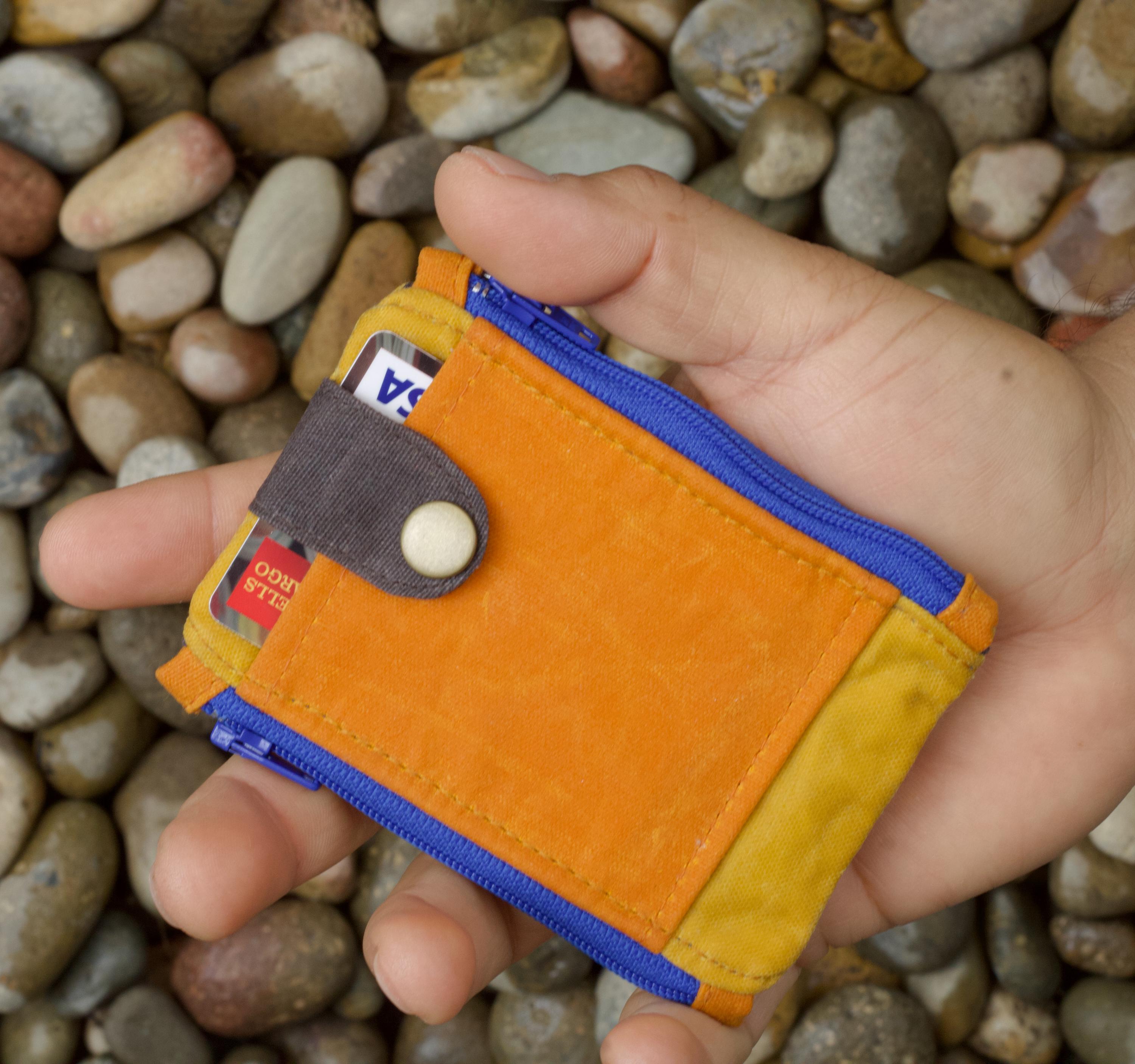 This is a Mini wallet pouch, made with waxed canvas it has separate zipper pouch, and one front slot...