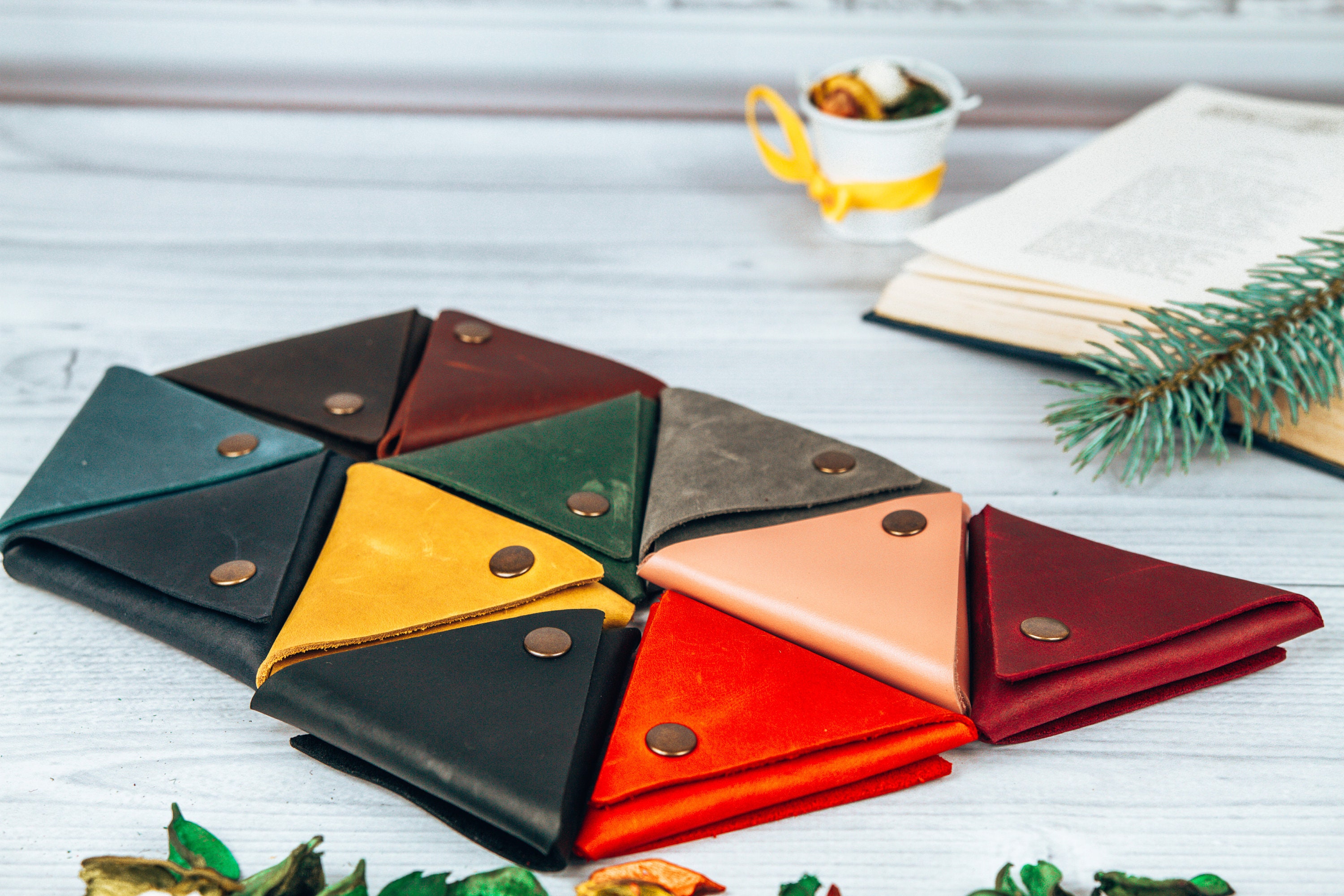 Triangle coin purse,Minimalist coin purse,Leather coin purse,Leathe...