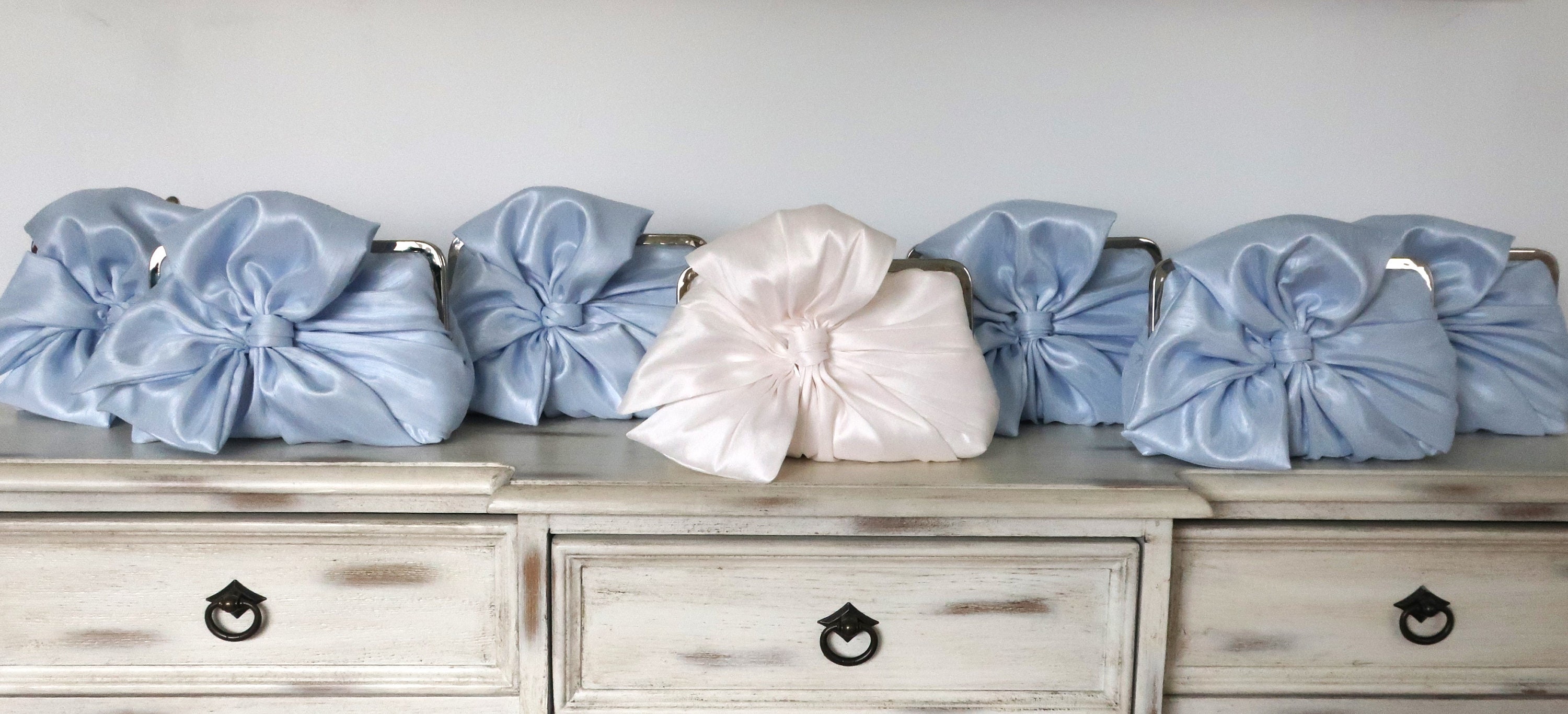 "Powder Blue Bow Clutch, Off White Clutch, Bridal Accessories, Bridal Clutch, Bridesmaid Clutch...