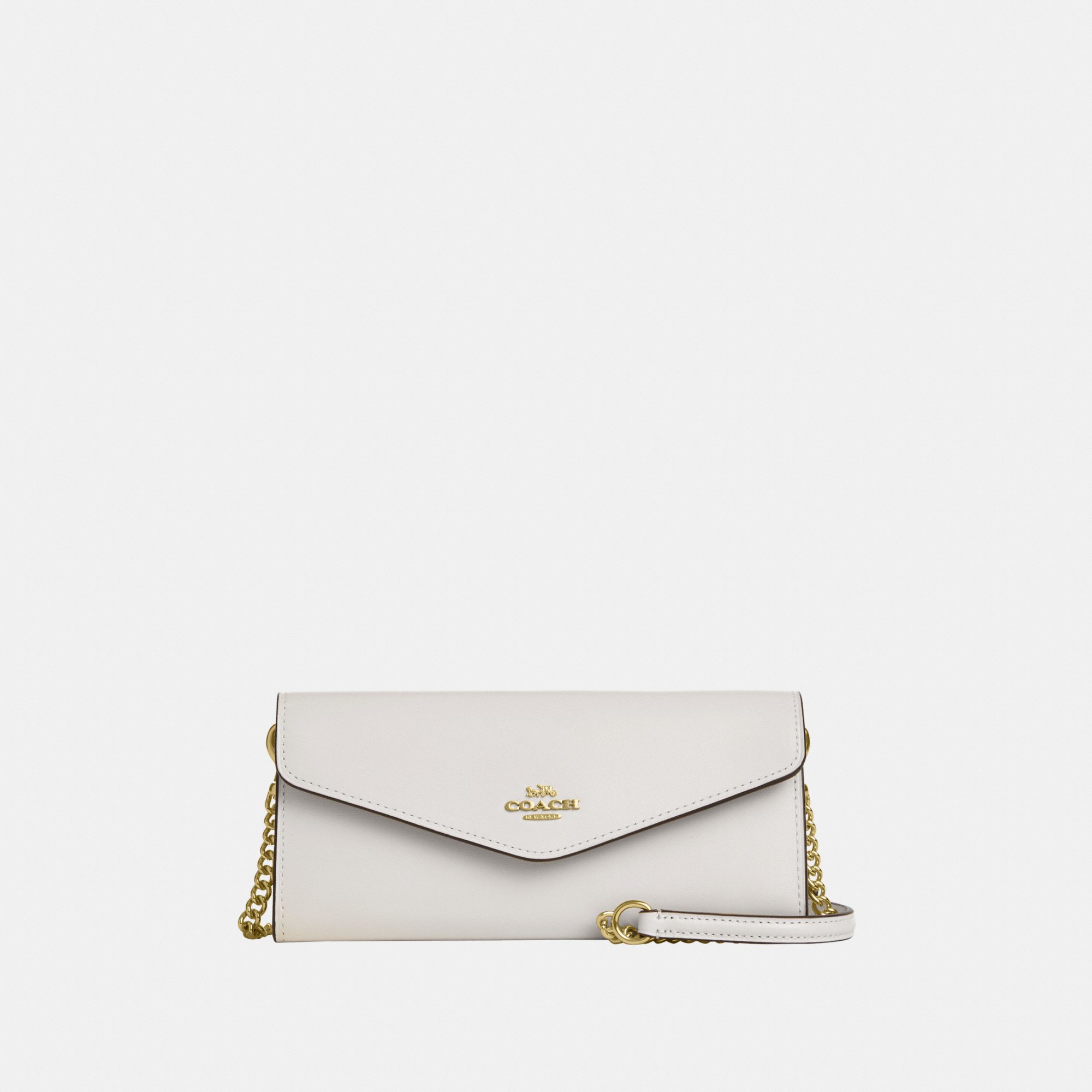 Coach Womens Klare Wallet With Chain in Refined Box Calf - White Le...