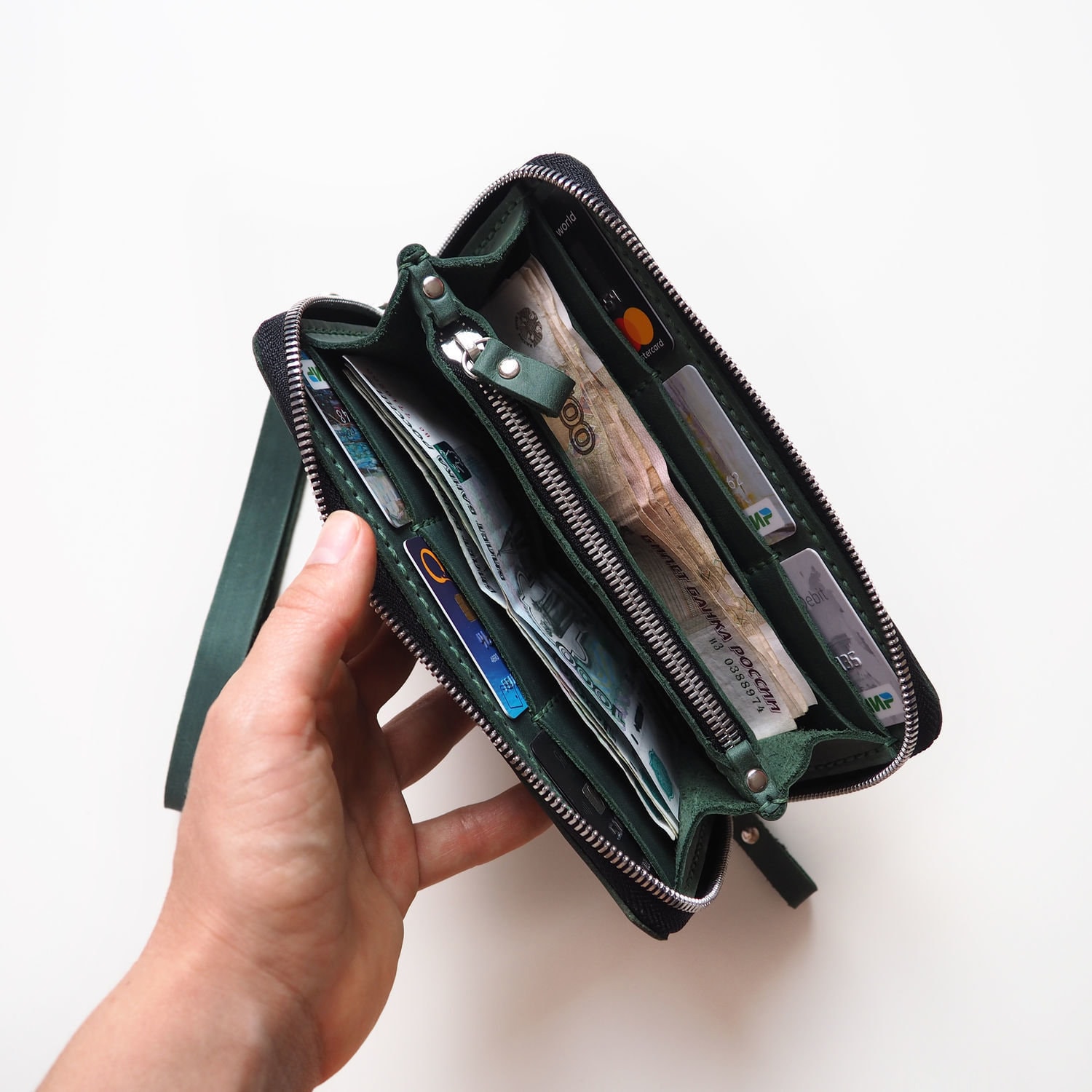 Wristlet wallet,Green zipper wallet,Leather zipper wallet women,Lea...