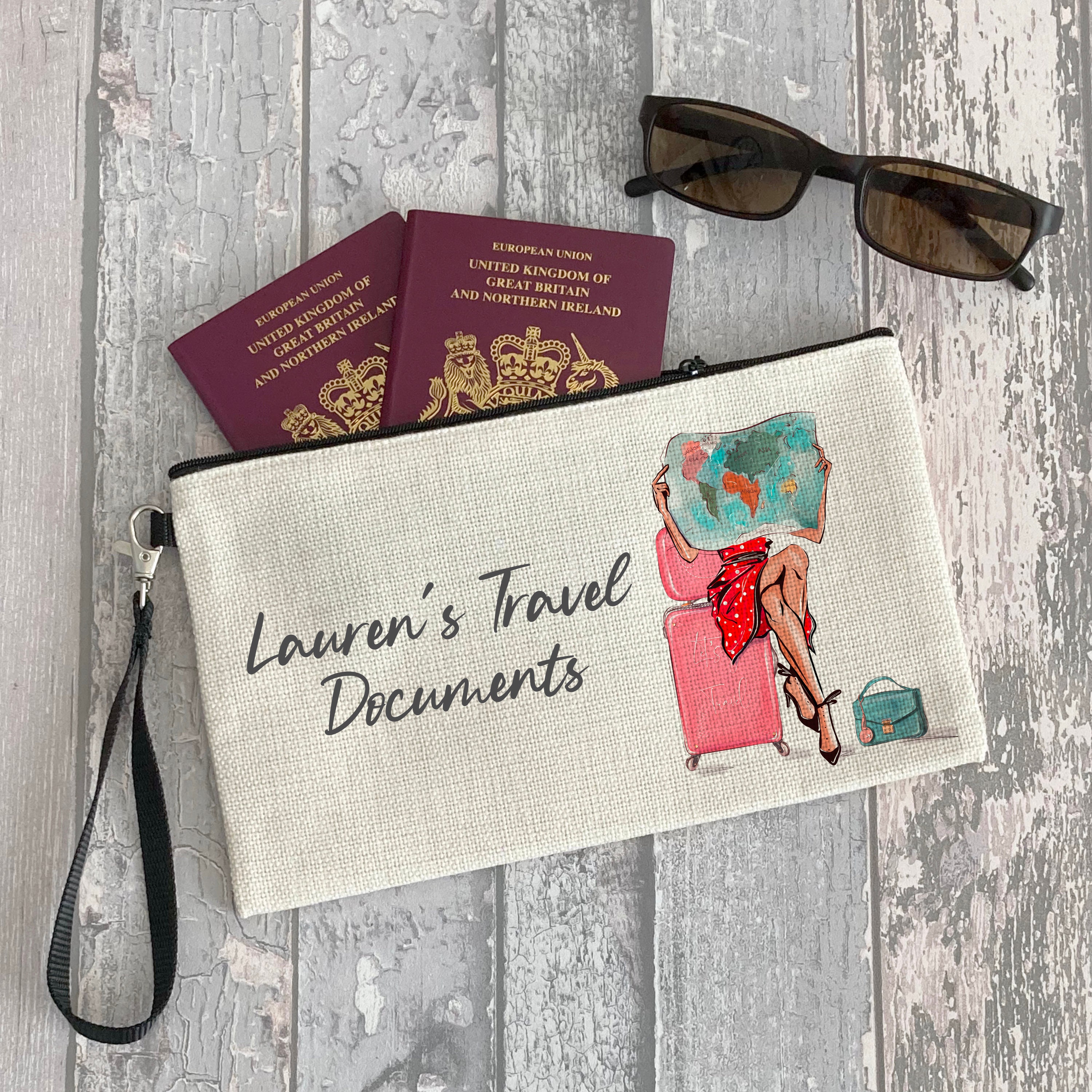 Personalised travel wallet, travel document holder, travel pouch, p...